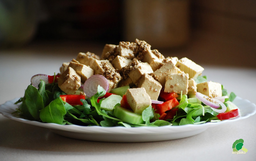 Sałatka z rukoli z marynowanym tofu (weg-anka.blogspot.com)