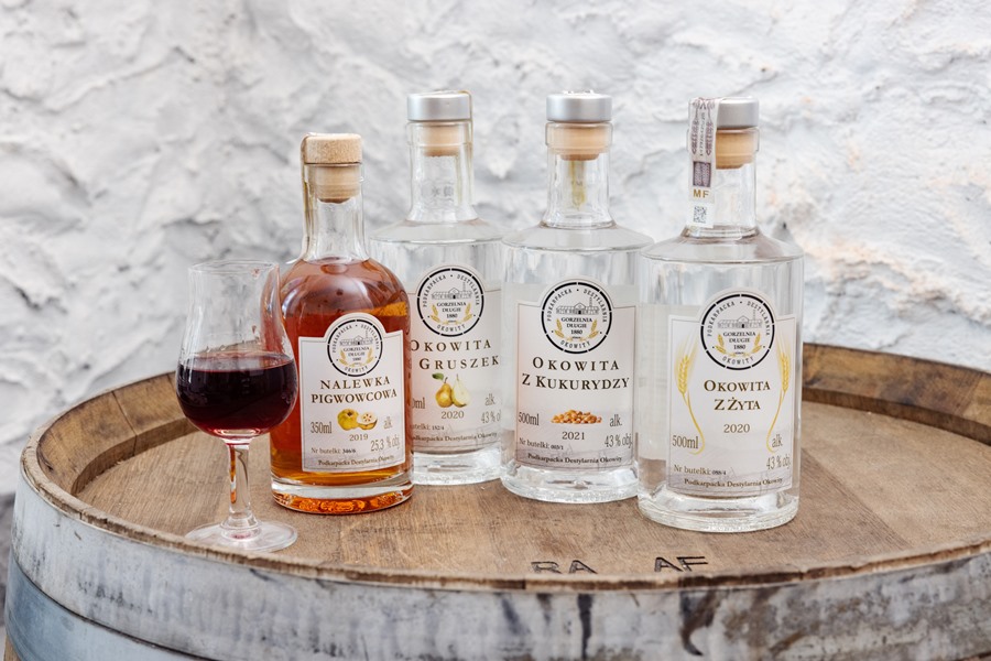 W 2017 roku w jednej z części budynku gorzelni uruchomiono małą tłocznię olei roślinnych, natomiast pierwsze trunki pojawiły się w 2019 roku i nie przekroczyły ilości 3 tys. butelek. Dziś w ofercie Podkarpackiej Destylarni Okowity wpisanej na Podkarpacki Szlak Historycznych Receptur są okowity: pszenna, żytnia, jęczmienna, z kukurydzy i ziemniaków oraz z owoców: jabłek, śliwek i gruszek. Do tego nalewka pigwowcowa, wiśniowa, malinowa, a od tego roku także dereniowa. Te można kupić w sklepie firmowym prowadzonym przy gorzelni, gdzie na półki trafiają też inne lokalne produkty: oleje, octy, czekolady i miody. Sprzedawane są również w kilku punktach w Bieszczadach i na Podkarpaciu oraz w największych miastach w Polsce. Smakoszy nie brakuje.