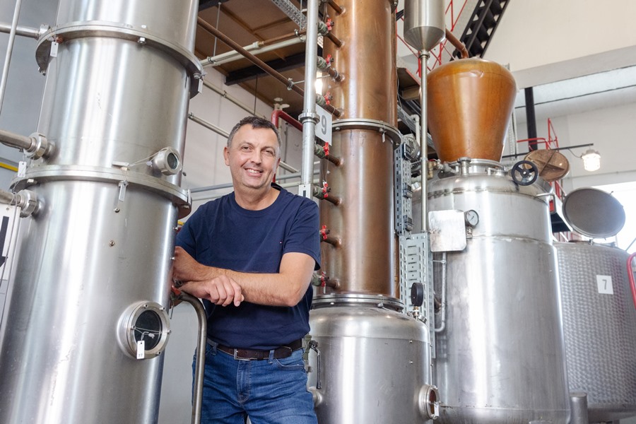 Grzegorz Pińczuk w Podkarpackiej Destylarni Okowity w Długiem. Fot. Tadeusz Poźniak