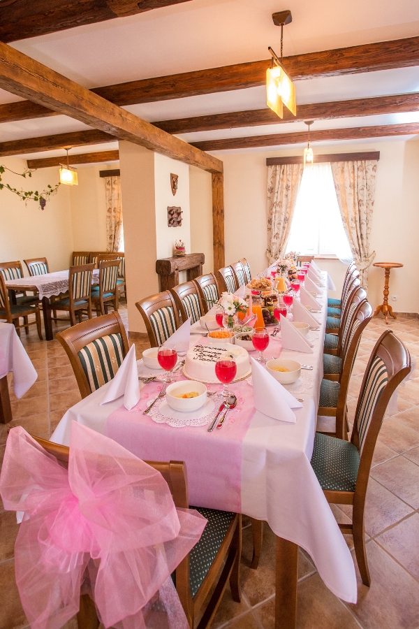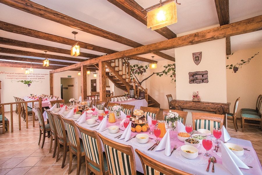 Od niedawna na terenie gospodarstwa w odrestaurowanym budynku funkcjonują: nawiązująca wystrojem do tradycji winiarskich sala restauracyjna stanowiąca doskonałą oprawę dla uroczystych kolacji, przyjęć rodzinnych i spotkań biznesowych, oraz klimatyczna piwnica degustacyjna, w której gospodarz przeprowadza dla zorganizowanych grup degustacje produkowanych w gospodarstwie win gronowych. Obiekt dysponuje również czterema przytulnymi pokojami z pełnym zapleczem sanitarnym, w których nocleg może znaleźć jednocześnie 10 osób. Na najmłodszych Gości czeka specjalnie urządzony kącik, gdzie dzieci mogą pobawić się oraz sprawdzić artystycznie, zaś na aktywnych, znudzonych długim biesiadowaniem możliwość przejażdżki rowerowej.