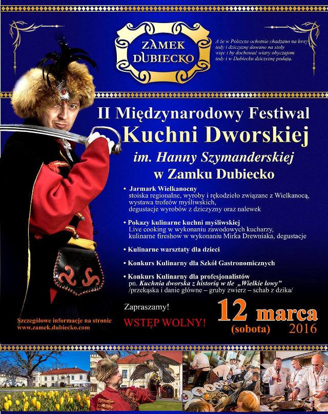 Pokazy kulinarne kuchni myśliwskiej, jarmark wielkanocny z prezentacją stoisk regionalnych i rękodzielniczych, konkursy kulinarne dla szkół oraz kulinarne warsztaty dla dzieci - w najbliższą sobotę, 12 marca w Zespole Zamkowo-Pałacowym w Dubiecku odbędzie się II Międzynarodowy Festiwal Kuchni Dworskiej im. Hanny Szymanderskiej.