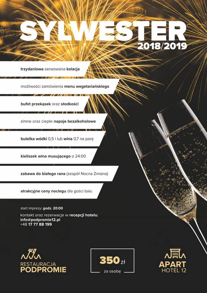 Serdecznie Zapraszamy na powitanie Nowego Roku w Restauracji Podpromie!