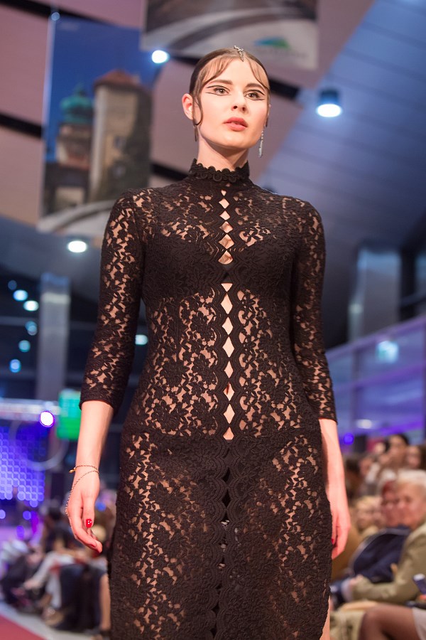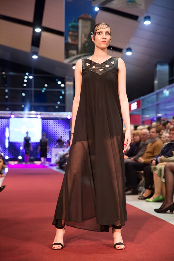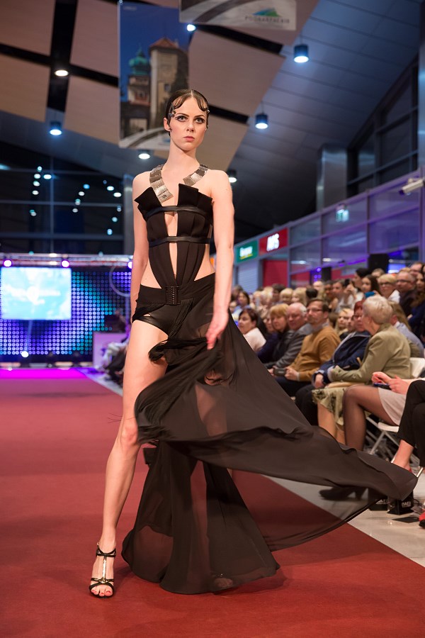 Występ na pewno wymagał od nich odwagi, ale i kolekcja rzeszowskiej projektantki adresowana jest do odważnych i zdecydowanych kobiet. Zawiera sukienki, spódnice, topy, spodnie, kombinezony i stroje kąpielowe. Dużo w niej ażurów, przezroczystości i odważnych cięć. To już znak rozpoznawczy marki BO. Tropem tym projektantka podąża na różne sposoby i proponuje np. zjawiskową sukienkę w całości uszyta z koronki. W niektórych sukienkach łączone nitami skórzane pasy, układają się w ażur, który wkomponowany zostaje we fragment mocno dopasowanej kreacji, ukazując kawałek uda lub pleców. W innych – pojawia się głęboki dekolt i wysokie rozcięcie na dole, które przysłania jedynie trochę frędzli. Frędzle falują także przy tiulowych spódnicach, a koronka pojawia się na wąskich spodniach i mocno wyciętych spodenkach.
