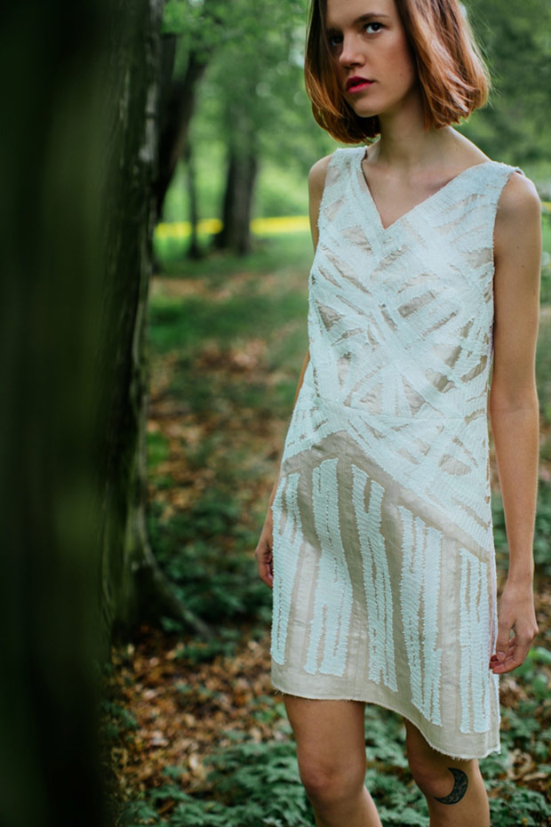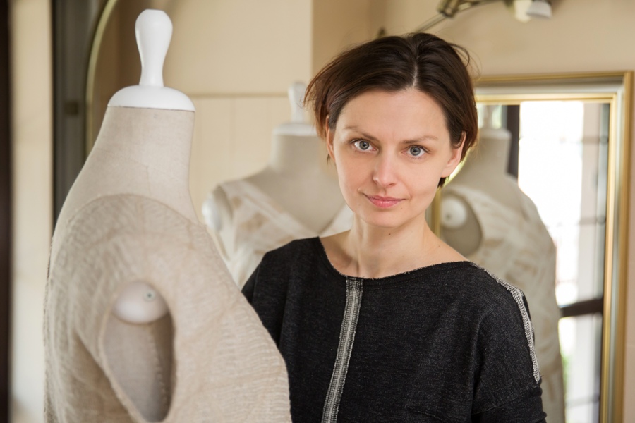 Projektantka modyfikuje też tradycyjne zastosowanie materiałów, aby nadać im nowe, bardziej modernistyczne formy. Dzięki temu, coraz więcej jej projektów powstaje z nowych, w pełni autorskich tkanin. - Każda ma swoje indywidualne właściwości: grubość, lekkość czy sztywność, stąd też różne jej zastosowanie – tłumaczy. - Nie są przygotowywane w metrażu. Tkanina za każdym razem powstaje od nowa, w kształcie odpowiednim do danego projektu ubrania.