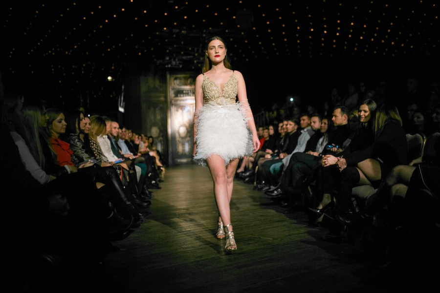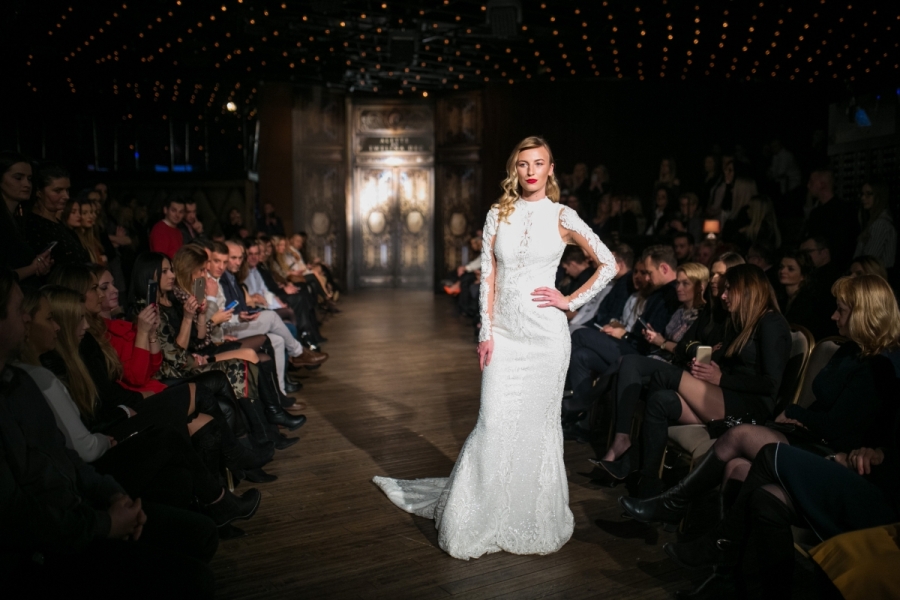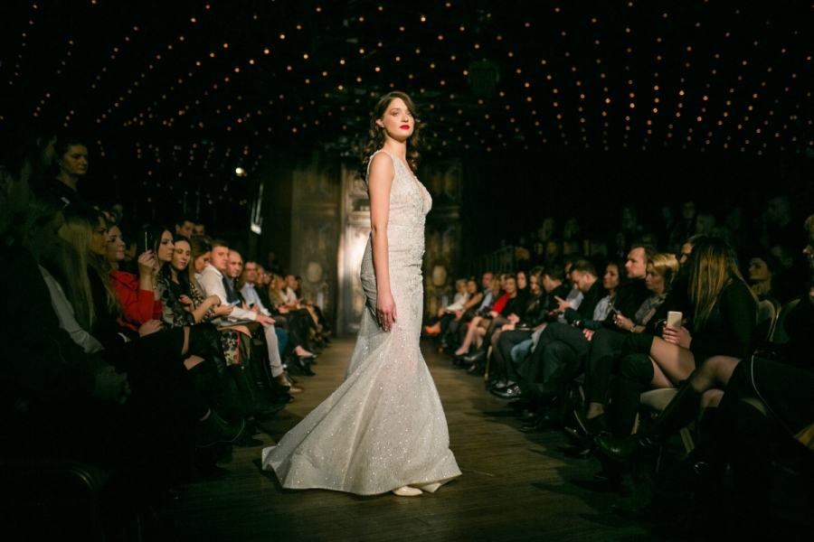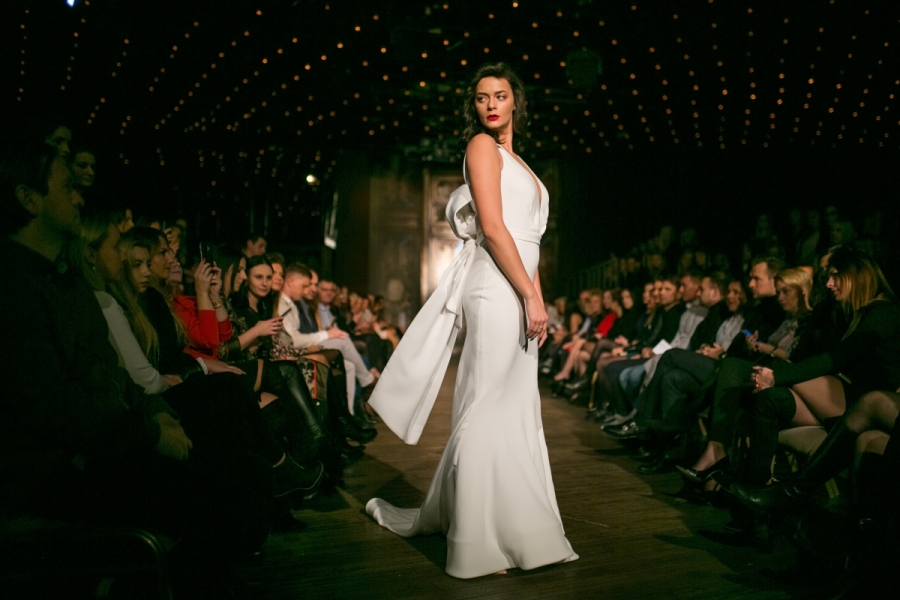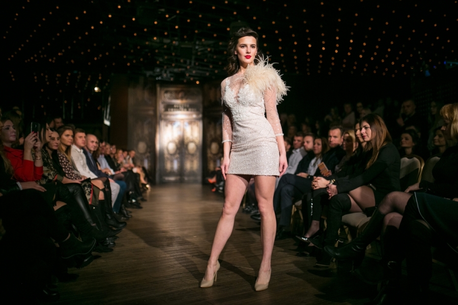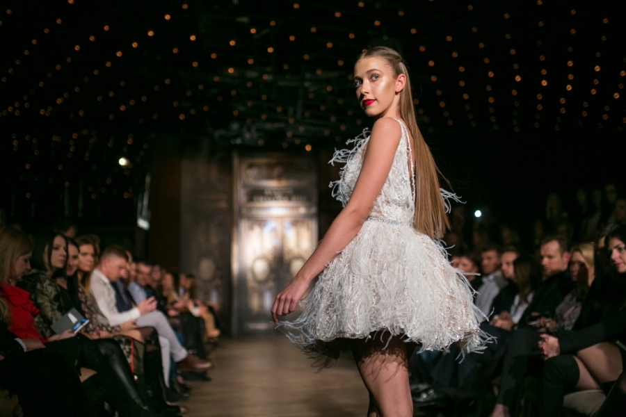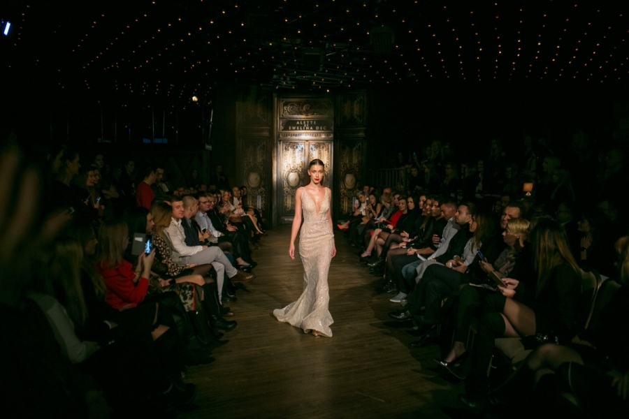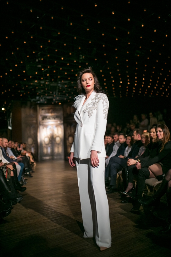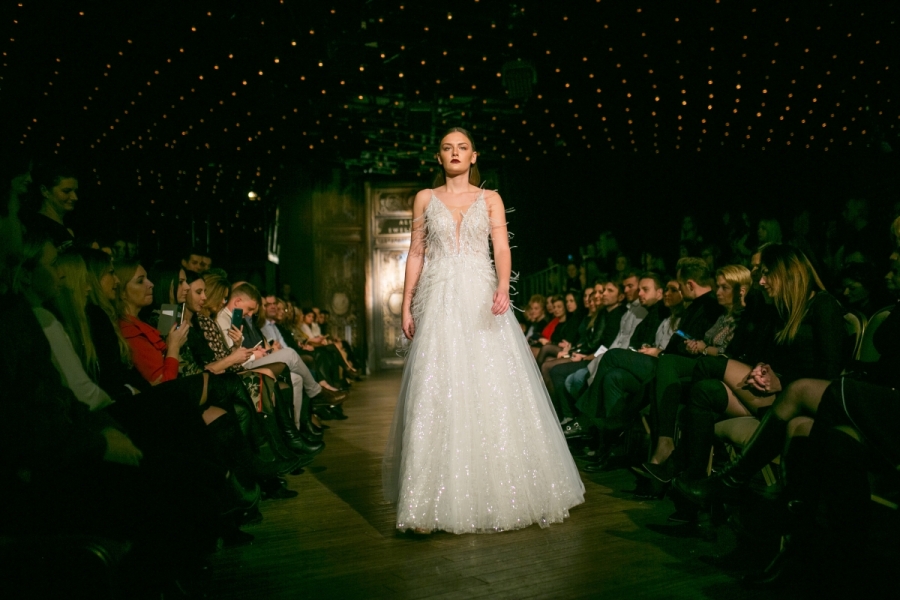Show rozpoczęła prezentacja sukien ślubnych, w których przeważały lekkie pióra, oryginalne błyszczące koronki oraz kamienie Swarovskiego nadające stylizacjom pięknego blasku. Nie zabrakło też wytwornych kreacji wieczorowych o niebanalnym wykończeniu z haftowanych koronek, zdobionych cekinami i koralikami. Wszystkie stylizacje utrzymane były w kolorystyce klasycznej czerni, bieli oraz złota.