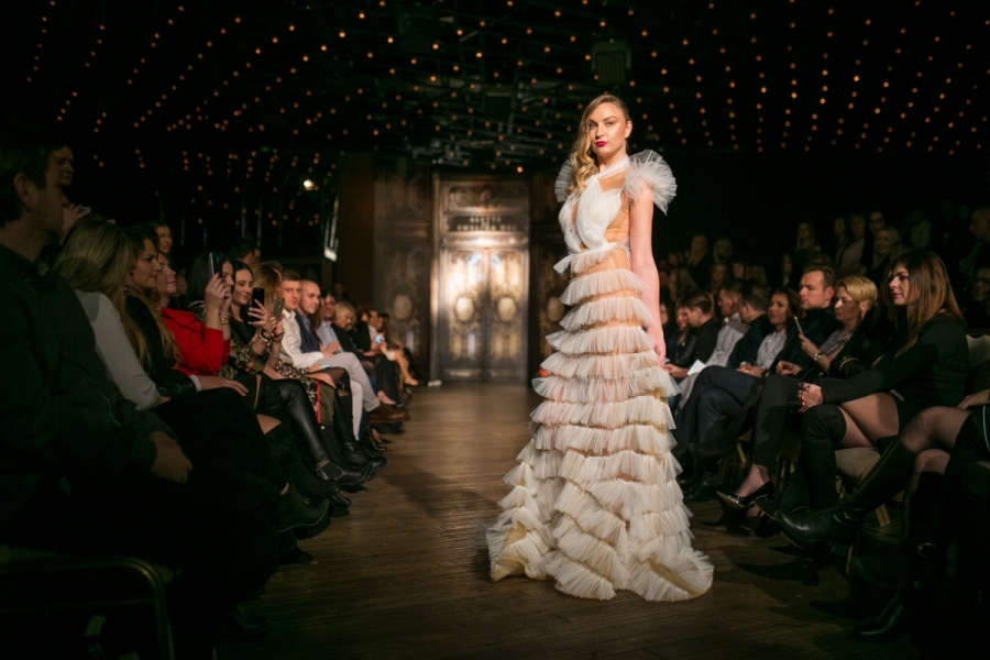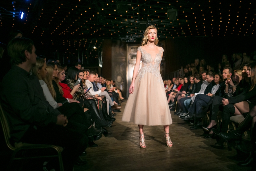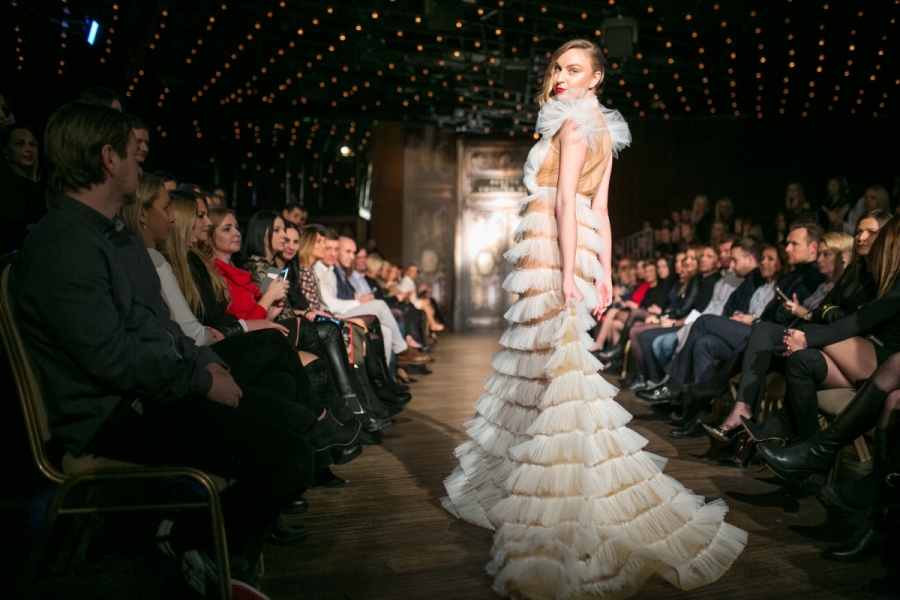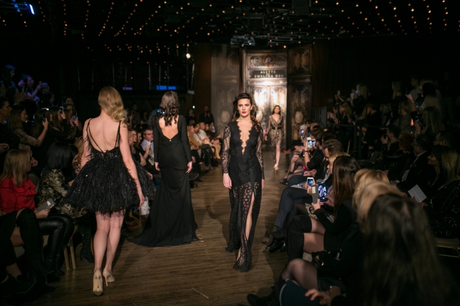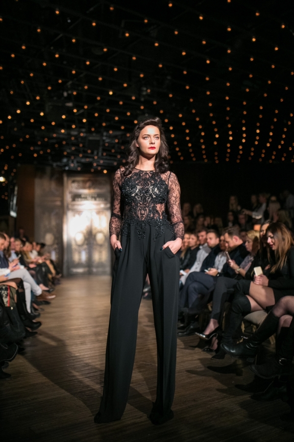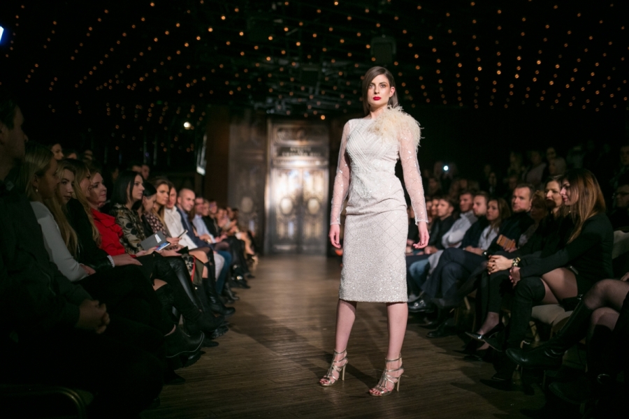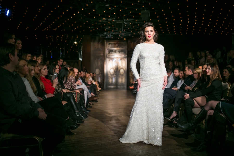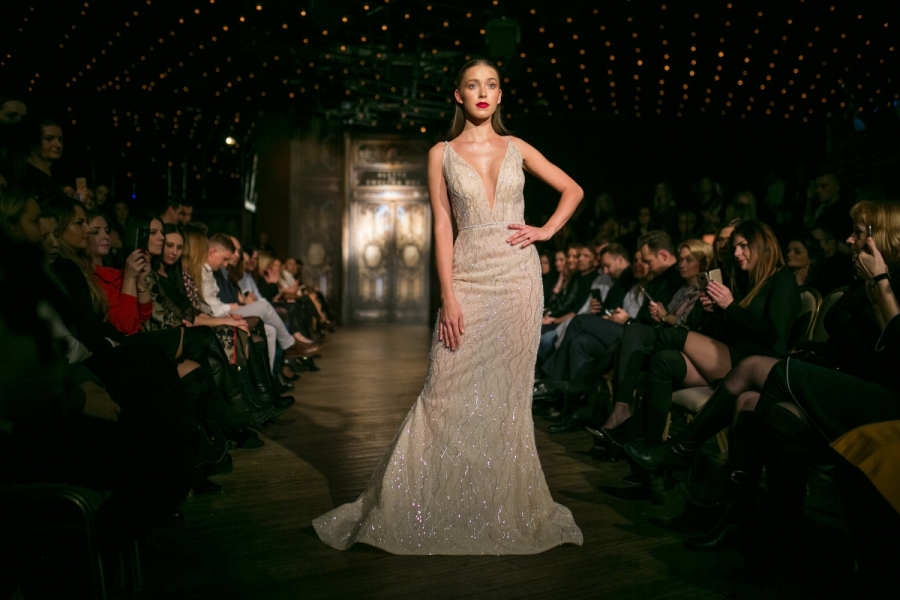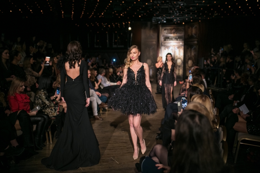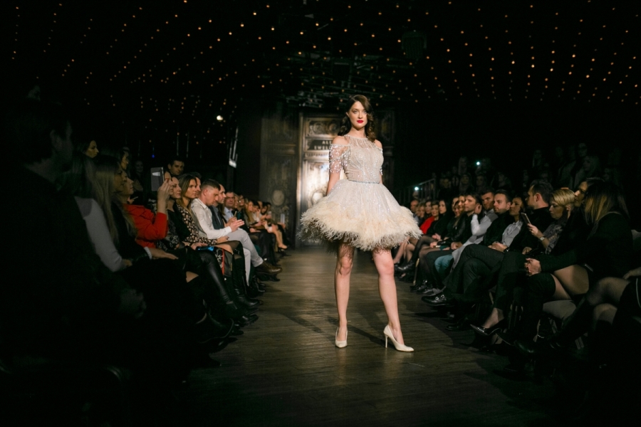 Show rozpoczęła prezentacja sukien ślubnych, w których przeważały lekkie pióra, oryginalne błyszczące koronki oraz kamienie Swarovskiego nadające stylizacjom pięknego blasku. Nie zabrakło też wytwornych kreacji wieczorowych o niebanalnym wykończeniu z haftowanych koronek, zdobionych cekinami i koralikami. Wszystkie stylizacje utrzymane były w kolorystyce klasycznej czerni, bieli oraz złota.
