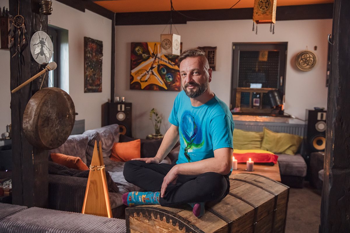 Grzegorz pochodzi ze Strzyżowa, ale to Połomia stała się jego oazą i twórczą inspiracją. To tutaj, w przydomowej pracowni, ozdabia ubrania, które sam projektuje. Te, gdy tylko zostaną uszyte z wysokogatunkowej, polskiej bawełny w zaprzyjaźnionej, rzeszowskiej szwalni, trafiają pod jego pędzel.