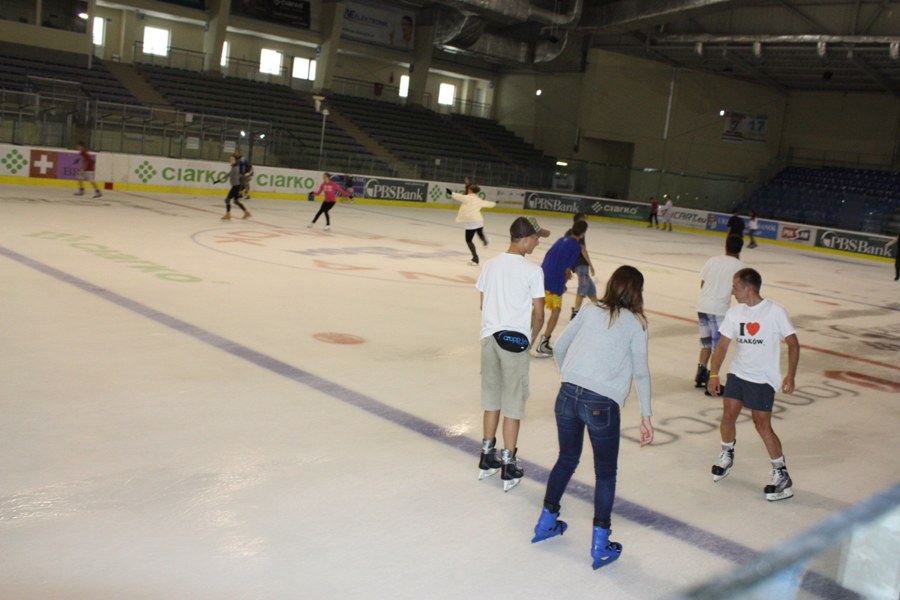 Letnia ślizgawka w hali widowiskowo-sportowej „Arena Sanok”. Ta popularna w zimie forma rozrywki, w Sanoku dostępna jest także w lecie. I… może się okazać jeszcze większą frajdą niż w zimie, bo w hali temperatura powietrza wynosi 12-14 stopni Celsjusza.