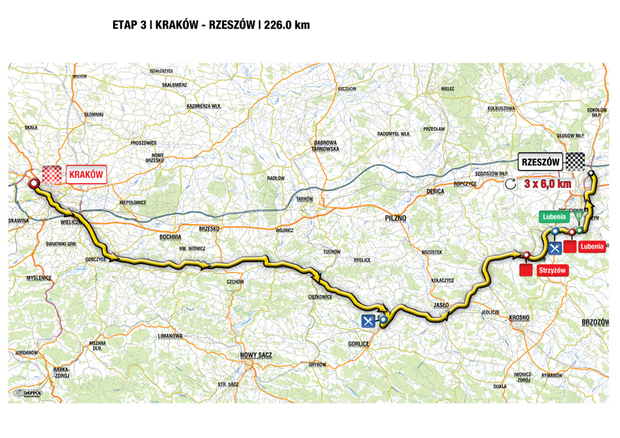 Trasa jubileuszowej, 70-tej edycji Tour de Pologne we wtorek będzie miała swój akcent na Podkarpaciu, a przede wszystkim w Rzeszowie. Po dwóch pierwszych etapach wyścigu rozegranych we Włoszech, we wtorek kolarze rozpoczną ściganie w Polsce. Trzeci etap Tour de Pologne swój start będzie miał w Krakowie, metę zaś w centrum Rzeszowa. We wtorek kolarze na Podkarpaciu pojawią się około godz. 15.30. Przejadą przez powiaty: jasielski, strzyżowski, rzeszowski i około 18.30 zwycięzcy wjadą na metę na alei Cieplińskiego w Rzeszowie.