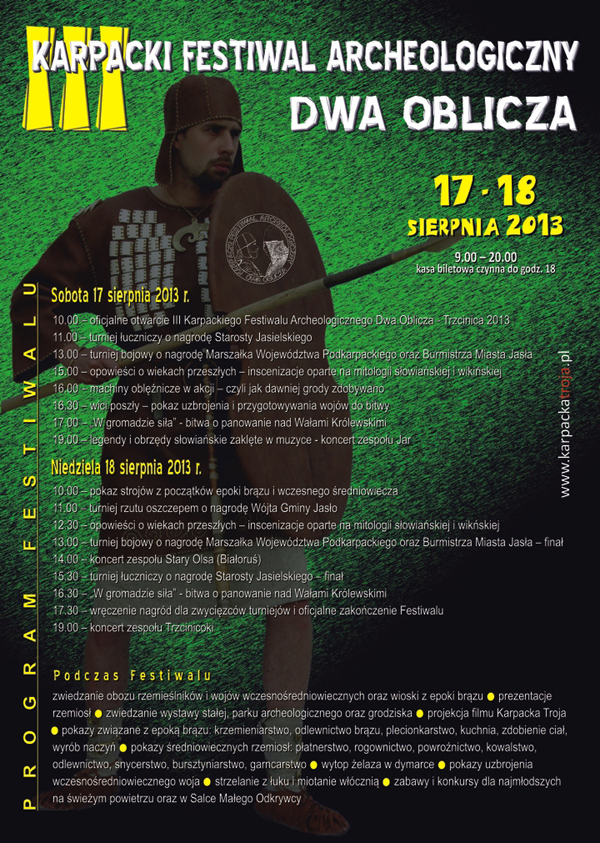 godz. 10.00 - oficjalne otwarcie III Karpackiego Festiwalu Archeologicznego Dwa Oblicza - Trzcinica 2013,