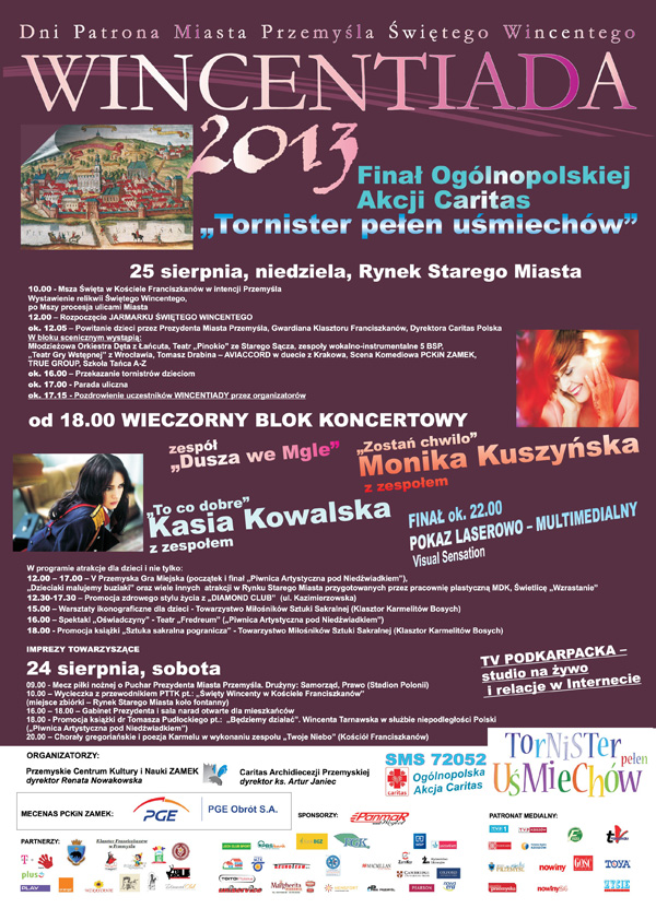 Święty Wincenty, patron Przemyśla, zaprasza w najbliższą niedzielę na swoje wielkie święto. Wincentiada 2013 zapowiada się wyjątkowo atrakcyjnie. W Rynku Starego Miasta na mieszkańców w każdym wieku czeka mnóstwo atrakcji, a wieczorem na scenie zaprezentują się Kasia Kowalskia i Monika Kuszyńska.