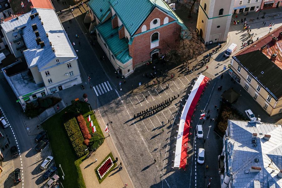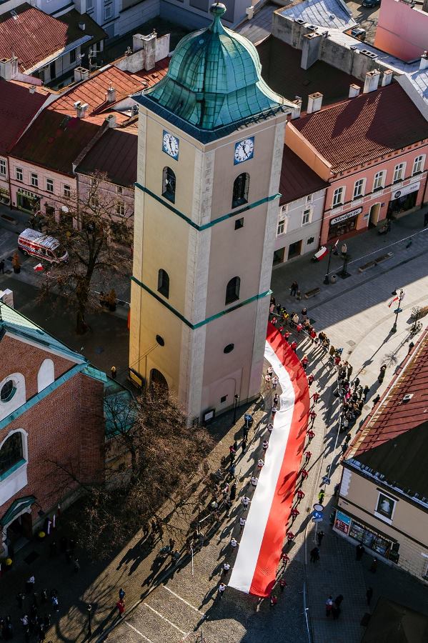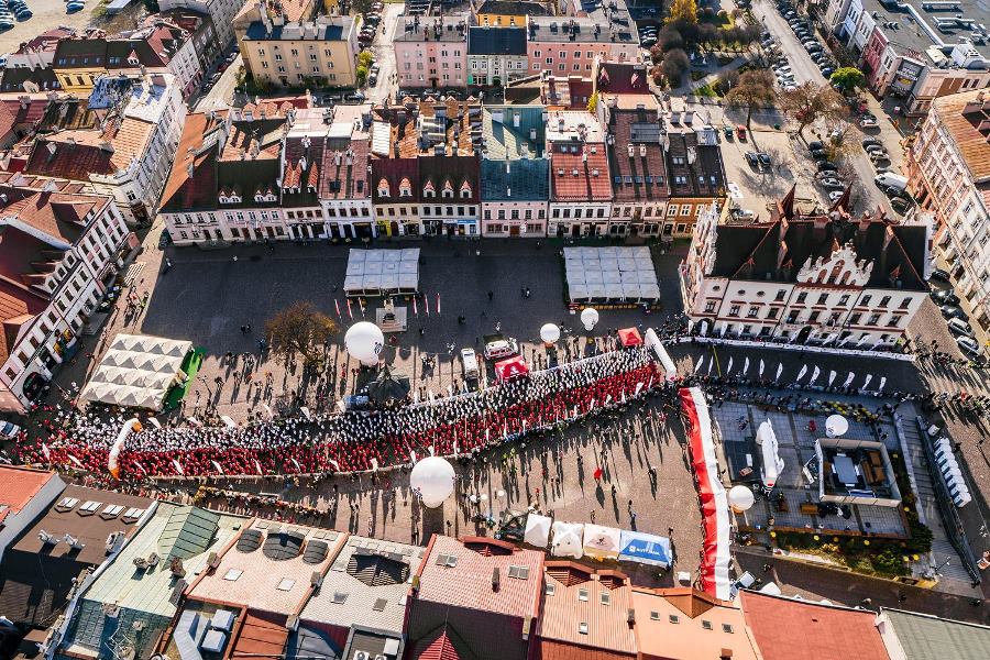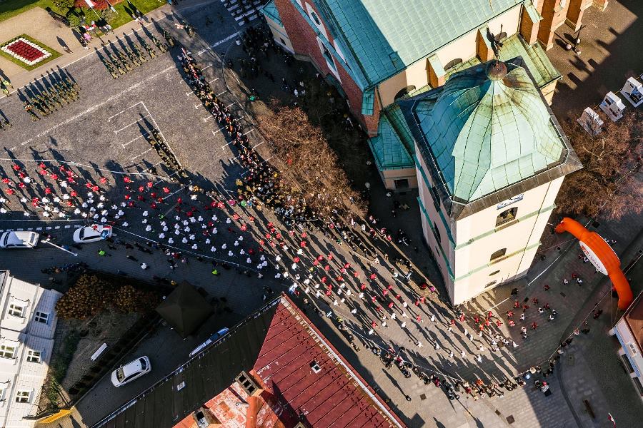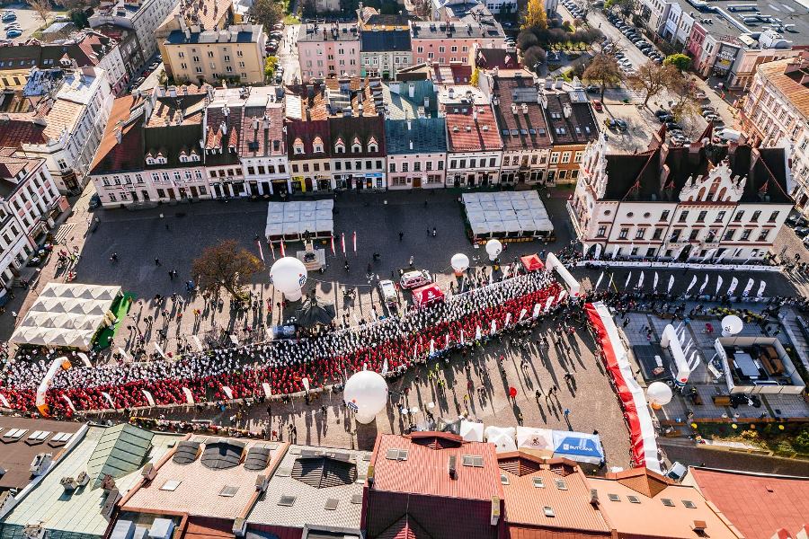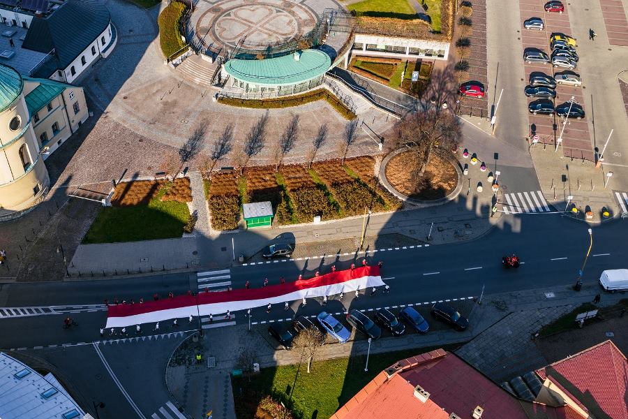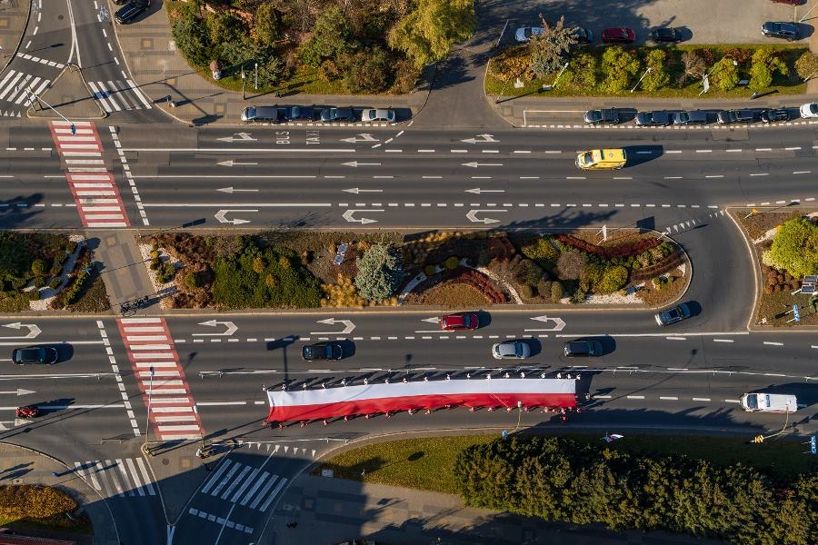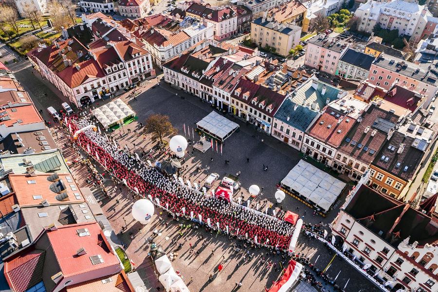 Wszyscy zawodnicy ubrani w białe lub czerwone koszulki stworzyli „żywą flagę”, a 35 osób na końcu stawki pobiegło z ogromną flagę Polski, którą nieśli przez całą trasę.