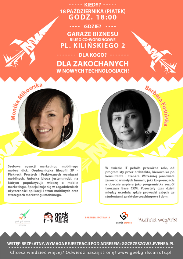 Rzeszowskie Geek Girls Carrots, kobiety które kochają nowe technologie, zapraszają w najbliższy piątek, 18 października, o godz. 18 do biura co-workingowego Garaże Biznesu przy ul. Kilińskiego w Rzeszowie. Kolejne spotkanie społeczności będzie poświęcone tematyce mobile.