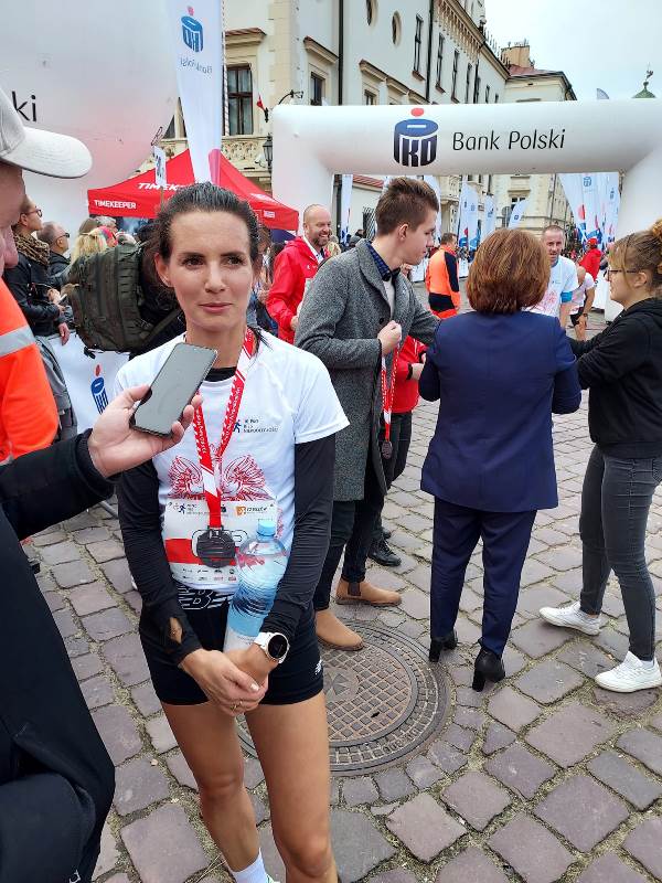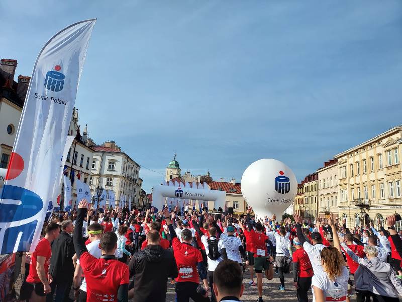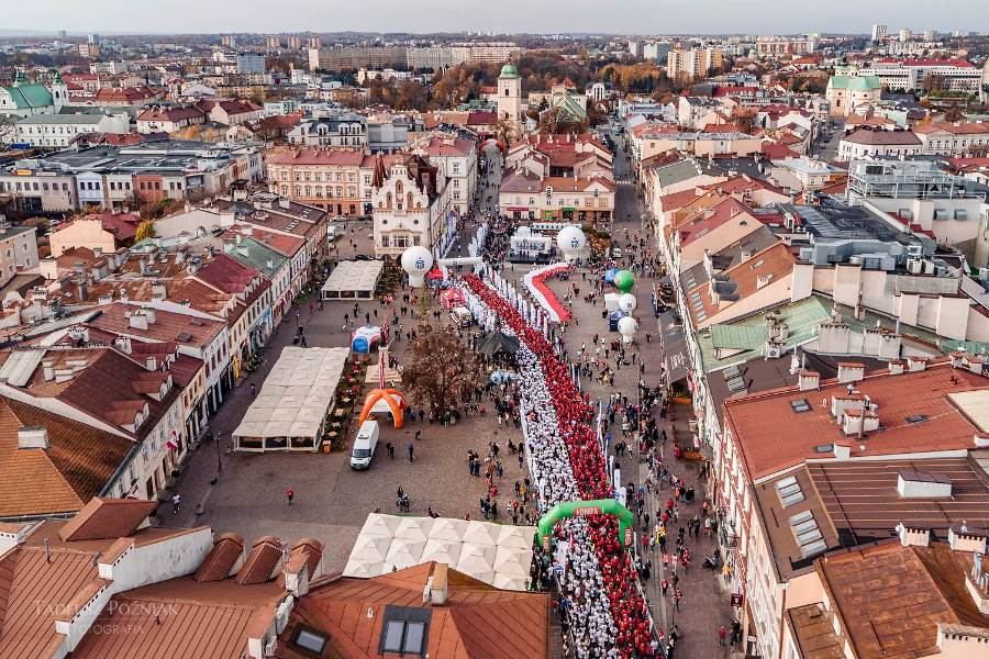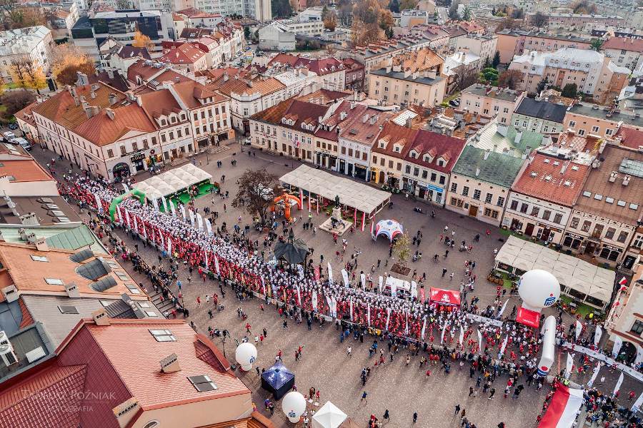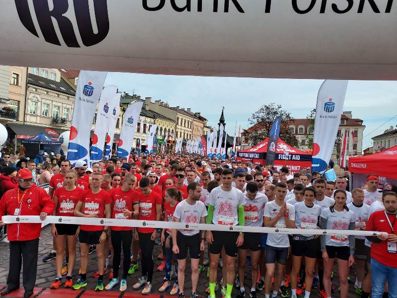 Wszyscy zawodnicy ubrani w białe lub czerwone koszulki stworzyli „żywą flagę”, a 35 osób na końcu stawki pobiegło z ogromną, 30-metrową flagę Polski, którą nieśli przez całą trasę.