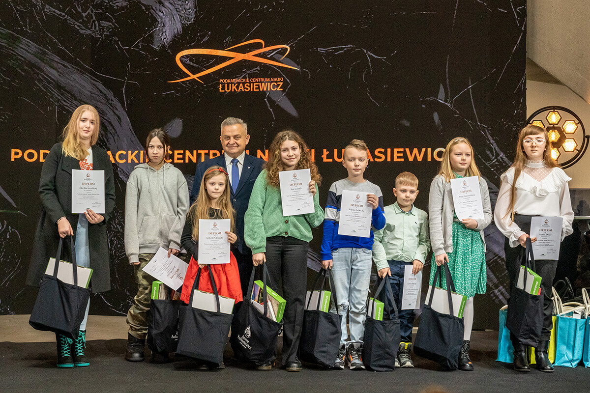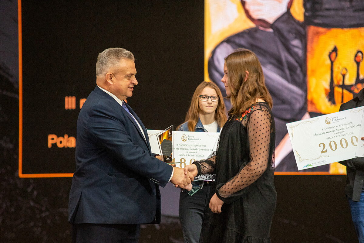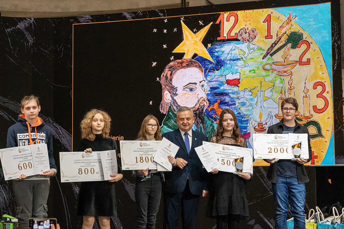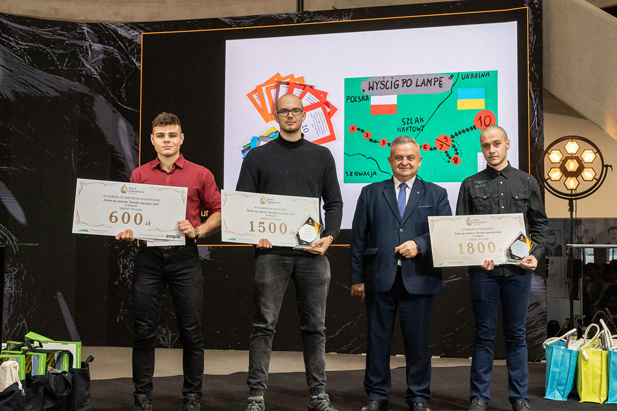 Laureaci w kategorii Szkoły ponadpodstawowe odebrali nagrody z rąk wicemarszałka Stanisława Kruczka. Fot. Krzysztof Zajączkowski