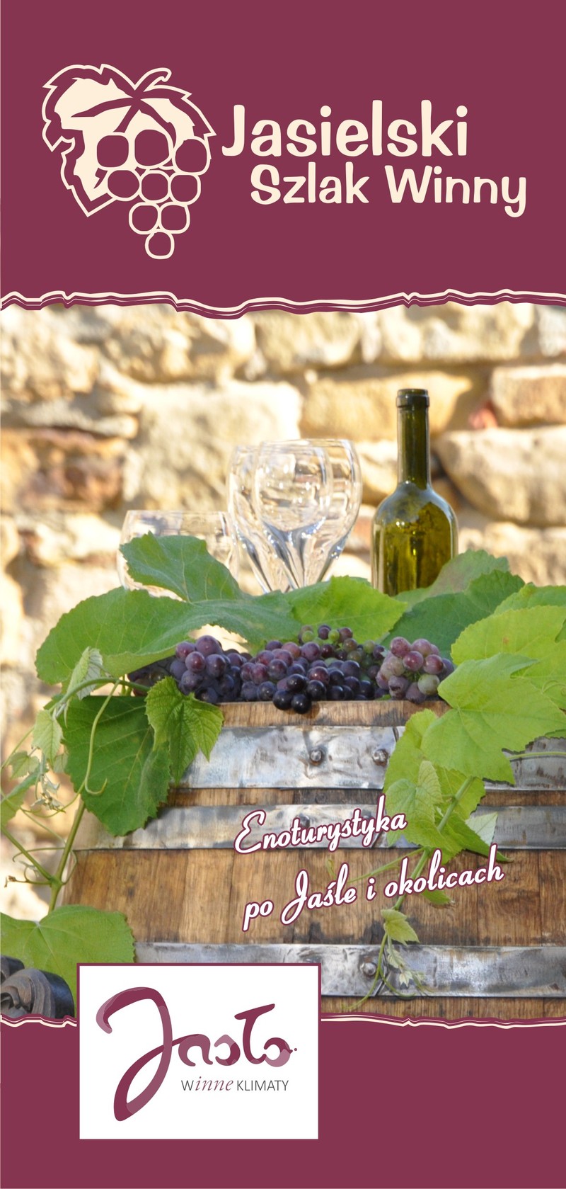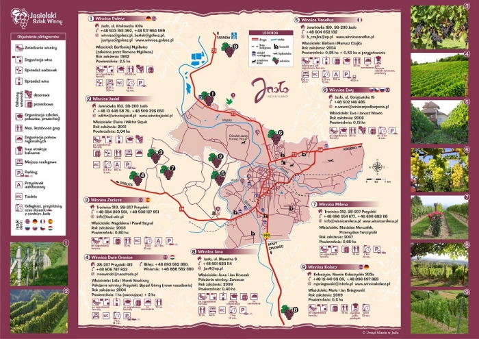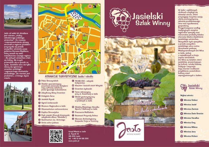i Jasielskiego Stowarzyszenia Winiarzy „Vinum pro cultura”. Opracowany materiał wykorzystywany będzie w promocji Szlaku, a także stanowić będzie informację dla turystów. W folderze zamieszczono mapkę z winnicami włączonymi do szlaku, podstawowe informacje o każdej z nich: rok założenia, właściciel, powierzchnia oraz oferta, a także największe atrakcje turystyczne samego Jasła, jak i jego okolic.