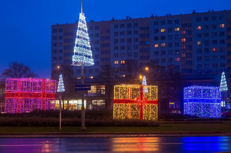 Motywy gwiazdek, aniołów, spiral świetlnych, prezentów-gigantów; oświetlenie drzew i latarni w bogatej gamie kolorystycznej… Świąteczna iluminacja Rzeszowa rozbłysła w Mikołajki, 6 grudnia. Świetlne dekoracje będą świecić do końca stycznia przyszłego roku.