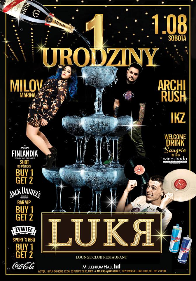 1 sierpnia mija roku od pierwszej imprezy w klubie LUKR. Jest to doskonała okazja do wspomnień, podsumowań i dobrej zabawy. Z tej okazji klub LUKR organizuje imprezę urodzinową.