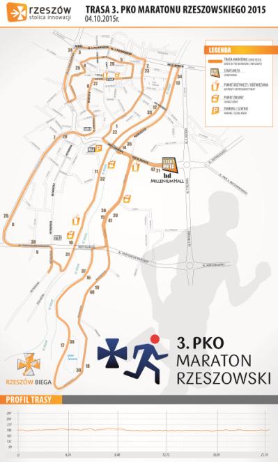 3 października, w sobotę odbędzie się Bieg na 5 km o Puchar Pratt & Whitney Rzeszów S.A. oraz Biegi Młodzieżowe. Z kolei w niedzielę, o godzinie 9:30 wystartuje 3. PKO Maraton Rzeszowski Sztafeta Maratońska (około 10 km + 10 km + 7 km + 5 km + 10 km). Trasy Biegu na Piątkę o Puchar Pratt & Whitney Rzeszów S.A oraz 3. PKO Maratonu Rzeszowskiego będą przebiegały ulicami centrum Rzeszowa oraz wzdłuż Wisłoka. Pierwsza z nich będzie liczyła 5 km (jedna pętla), druga dwie jednakowe pętle. Start i meta będą się znajdować w Centrum Handlowym Millenium Hall przy ul. Kopisto 1.