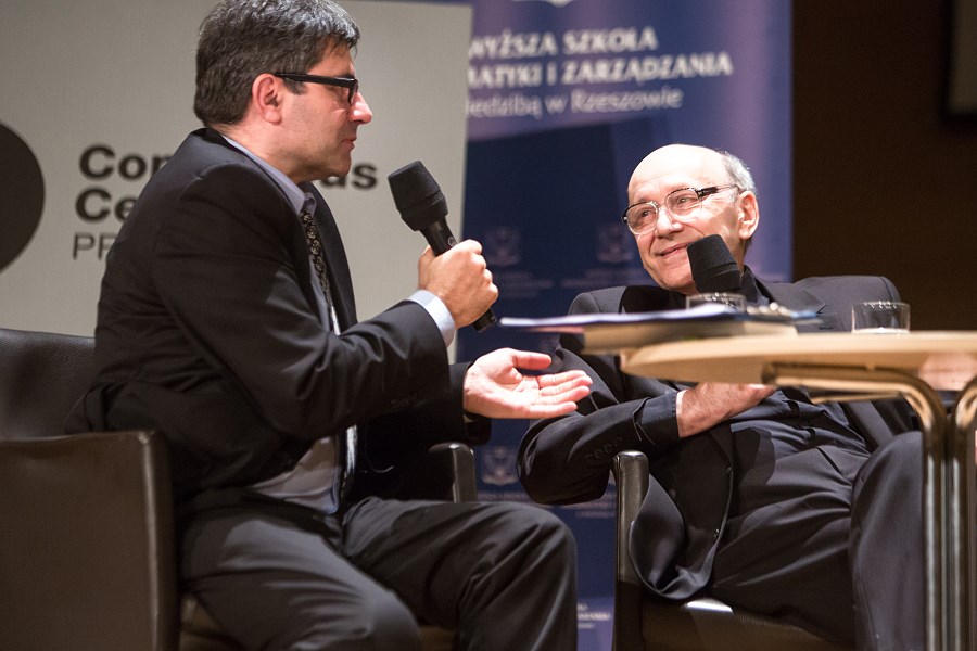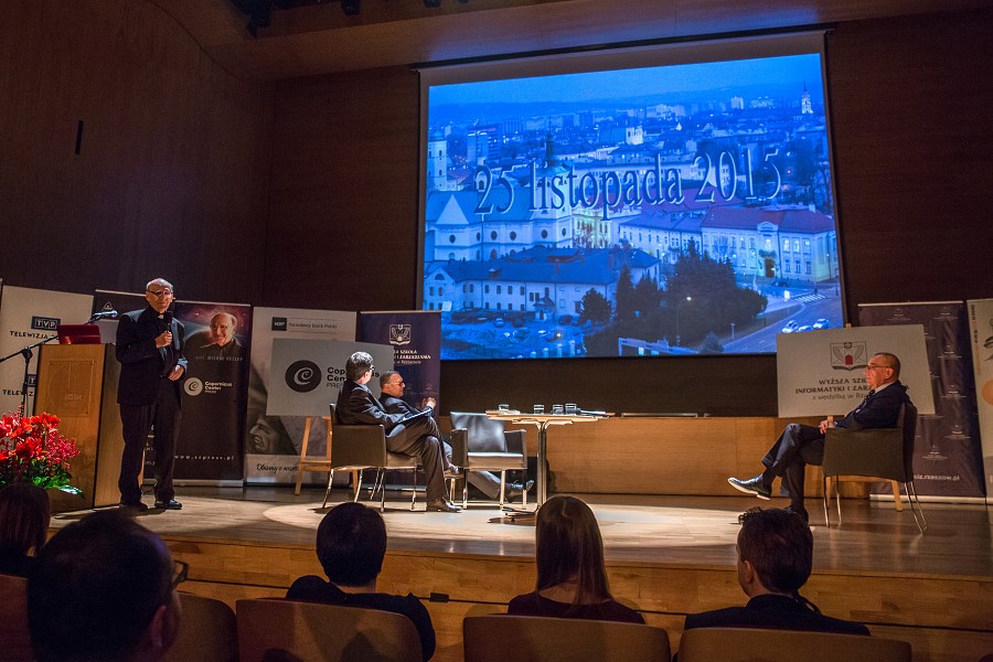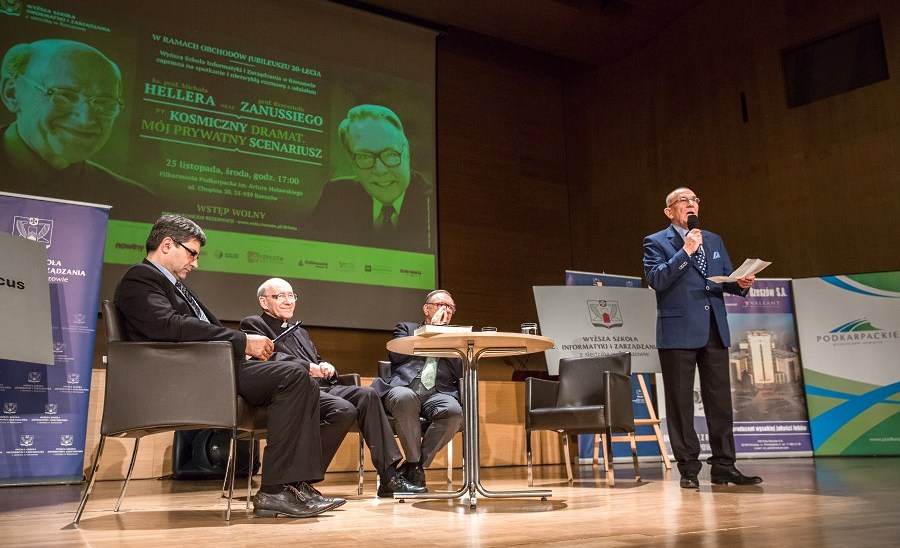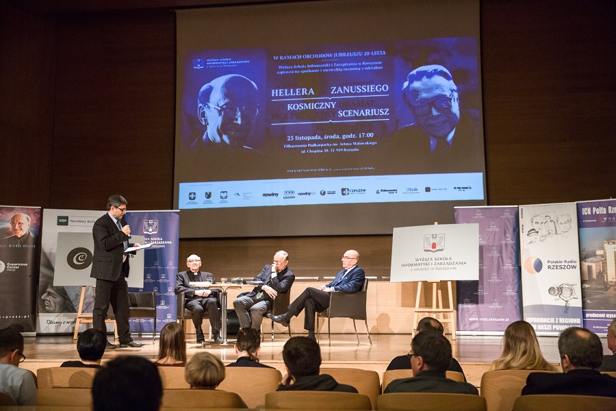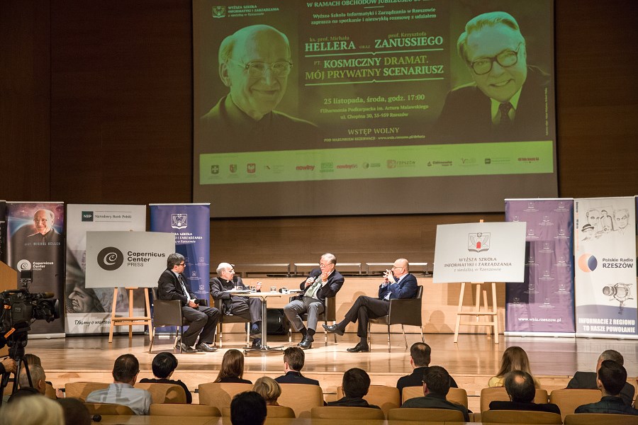 Spotkanie „Kosmiczny dramat. Mój prywatny scenariusz” było niezwykłą rozmową dwóch niezwykłych osób: ks. prof. Michała Hellera, laureata prestiżowej Nagrody Templetona, kosmologa, filozofa i teologa, oraz prof. Krzysztofa Zanussiego, wybitnego reżysera filmowego, scenarzysty, producenta, fizyka i filozofa. Spotkanie odbyło się w ramach obchodów jubileuszu 20-lecia istnienia jego organizatora - Wyższej Szkoły Informatyki i Zarządzania w Rzeszowie.