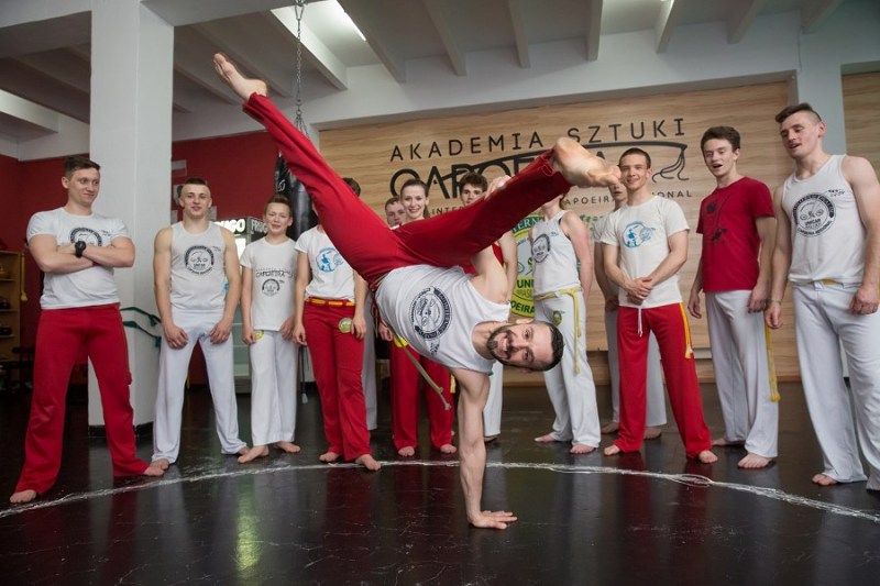 - W Polsce pojawiła się ponad 20 lat temu – mówi Tomasz Majka, instruktor, właściciel Akademii Sztuki Capoeira (ASC) w Rzeszowie. – Pierwszą grupę założył Adam Faba, który zafascynowany tą sztuką walki, sprowadził ją do Polski i trenuje do dzisiaj. Moja przygoda rozpoczęła się 15 lat temu. Byłem licealistą, kiedy wraz z kolegami pojechałem do Szwajcarii do prac sezonowych. Każdy wolny wieczór spędzaliśmy na boisku do koszykówki, gdzie spotykaliśmy się z okoliczną młodzieżą. Było to miejsce, gdzie przychodzili pasjonaci różnych sportów, również osoby trenujące capoeirę. Wtedy nie miałem pojęcia, co to w ogóle jest, ale akrobacje, które wykonywali, były bardzo efektowne. Robili gwiazdy, kopnięcia w powietrzu, uniki, stawali na rękach, na głowach. Początkowo myśleliśmy, że jest to coś w rodzaju tańca. Zachęceni, spróbowaliśmy. Od tamtej pory do zakończenia pobytu w Szwajcarii, ćwiczyliśmy razem z nimi.