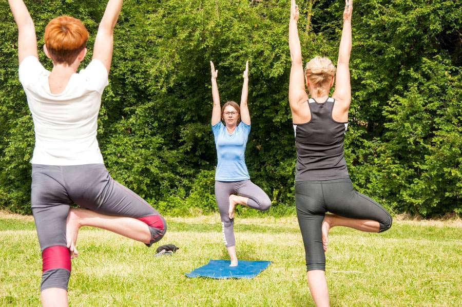 Zajęcia odbywają się w każdą pogodną sobotę nad Wisłokiem, tuż obok pola do mini golfa. Wybrałam to miejsce z kilku względów, ale głównie chodziło o podłoże mówi joginka z Rzeszowa. Jest ono równe, a trawa zawsze skoszona. Ponadto, zależało mi na tym, by miejsce ćwiczeń oddalone było od przechodniów na tyle, aby ćwiczący czuli się komfortowo, ale żeby ludzie mogli też to zobaczyć.