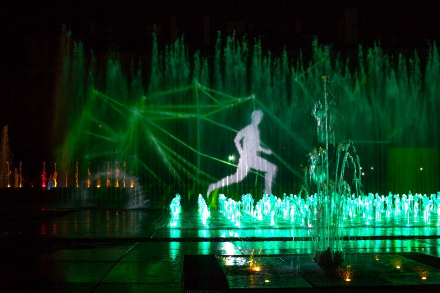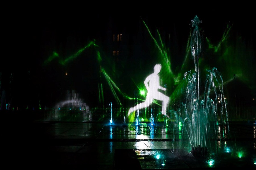 Sport i film na nowym pokazie fontanny multimedialnej