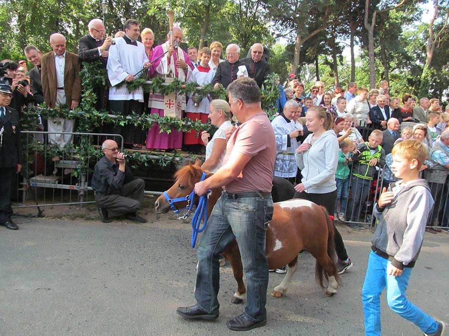 Przed bramą prowadzącą do sanktuarium w niezwykłej procesji – wraz ze swoimi właścicielami i opiekunami - przeszły (lub były niesione) konie, kucyki, krowy, psy, koty, króliki, szynszyle, świnki morskie, chomiki, ptaki, żółwie, gołębie, pszczoły, a nawet kameleon… Niemal cała Arka Noego. Niektóre zwierzęta zostały na tę okazję odświętnie ustrojone kokardkami i innymi ozdobami. Uwagę zwracało to, że nawet psy i koty odnosiły się do siebie przyjaźnie. Oczywiście, tradycji stało się zadość i na zakończenie obrzędu błogosławieństwa bp Łukasz Buzun i kustosz sanktuarium, ks. Krzysztof Ordziniak, wypuścili gołębie z klatek.