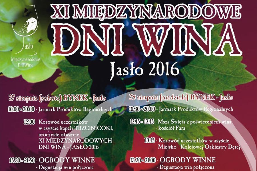 Tradycyjnie, już od 11 lat jasielski rynek zapełnią winiarze, dystrybutorzy win oraz miłośnicy tego trunku z całej Polski i zagranicy. Będą też przedstawiciele firm wytwarzających i sprowadzających wszelkie artykuły oraz urządzenia potrzebne w wielkich i małych winnicach, a przydatne także tym, którzy próbują robić wino domowe. Międzynarodowe Dni Wina to nie tylko rozmowy i degustacje wina, to również muzyczna impreza plenerowa. Wystąpią: Stefano Terrazzino&Belli RiBelli, Kabaret pod Wyrwigroszem, Piotr Nowak Band i Jass Brass Consort z Mirosławem Witkowskim. Międzynarodowym Dniom Wina towarzyszyć będą warsztaty degustacyjne, które poprowadzi Tomasz Kolecki Majewicz, uznany w środowisku sommelier, wielokrotny Mistrz Polski, uczestnik finałów Mistrzostw Europy i Świata Sommelierów.