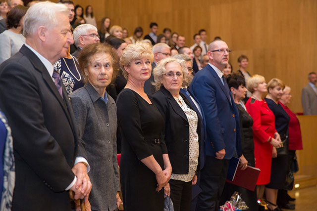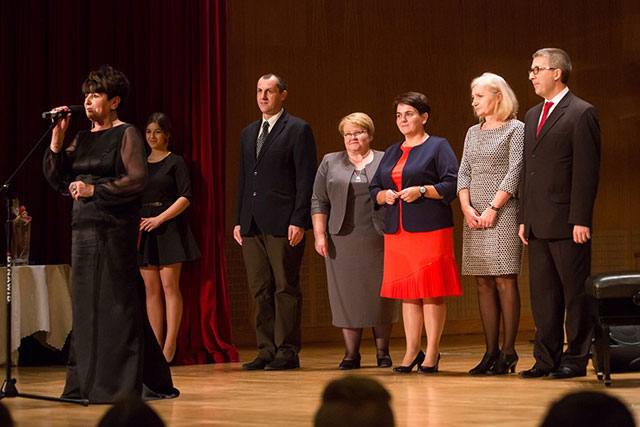 W dużej sali Filharmonii na widowni zasiedli m.in. emerytowani nauczyciele, z pierwszym dyrektorem Adolfem Gubernatem na czele, oraz absolwenci różnych roczników i obecni uczniowie.