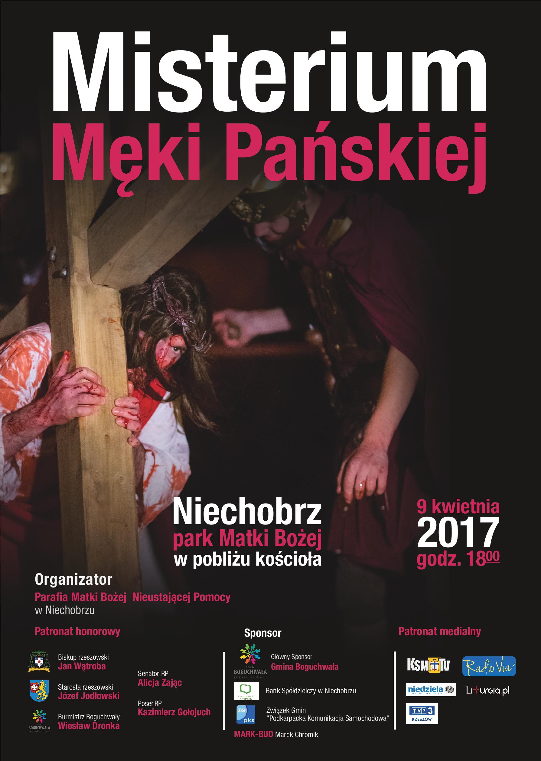 Misterium Męki Pańskiej organizowane jest także w Niechobrzu w parku Matki Bożej w pobliżu kościoła. Rozpocznie się ono o godz. 18 w niedzielę, 9 kwietnia. Będzie to już trzecia edycja tego widowiska, którego pomysłodawcą jest Tomasz Grzebyk, student historii z Niechobrza.