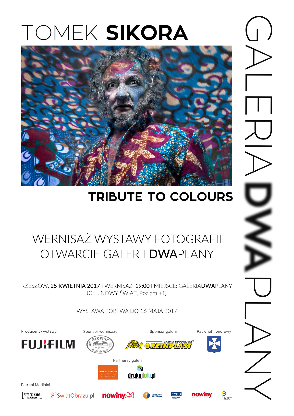 Wernisaż wystawy fotografii pt. „Tribute to Colours” autorstwa Tomka Sikory, wybitnego polskiego artysty, to mocne wejście w przestrzeń kulturalną Rzeszowa nowej galerii – Dwa Plany. Wydarzenie z udziałem autora inaugracyjnej wystawy, zaplanowano na 25 kwietnia br., godz. 19.