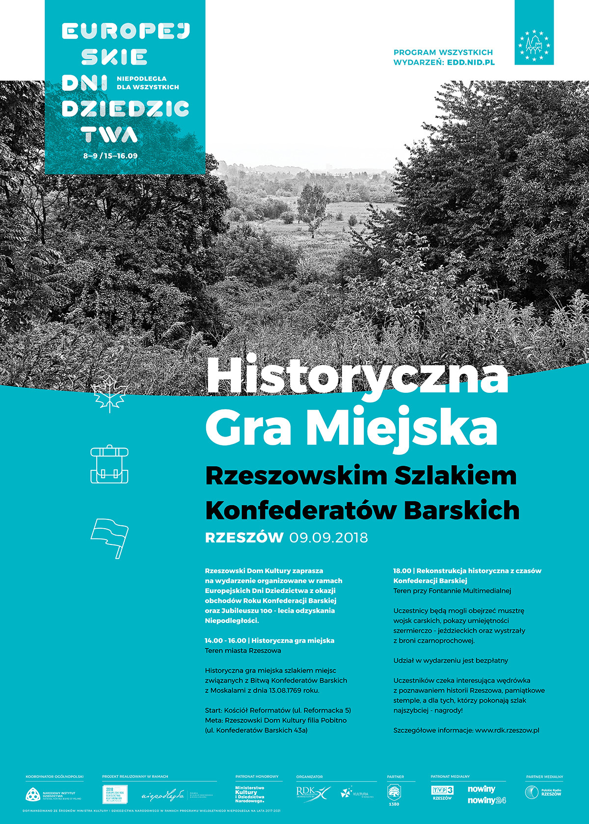Organizatorem historycznej gry miejskiej „Rzeszowskim Szlakiem Konfederatów Barskich” jest Rzeszowski Dom Kultury przy współpracy z Radą Osiedla Pobitno. Tegoroczna edycja wydarzenia jest realizowana w ramach Europejskich Dni Dziedzictwa, z okazji obchodów Roku Konfederacji Barskiej oraz Jubileuszu 100-lecia Odzyskania Niepodległości. Udział w wydarzeniach jest bezpłatny.