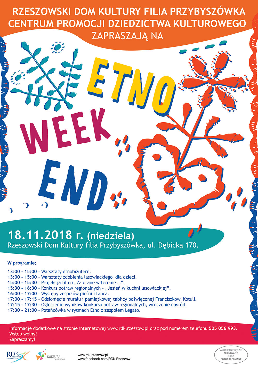 18 listopada w Rzeszowskim Domu Kultury, jego filli przy ulicy Dębickiej 170 odbędzie się Etnoweekend. Nie zabraknie występów zespołów pieśni i tańca, konkursu potraw regionalnych oraz warsztatów zdobień lasowiackich. Wstęp na imprezę jest bezpłatny.