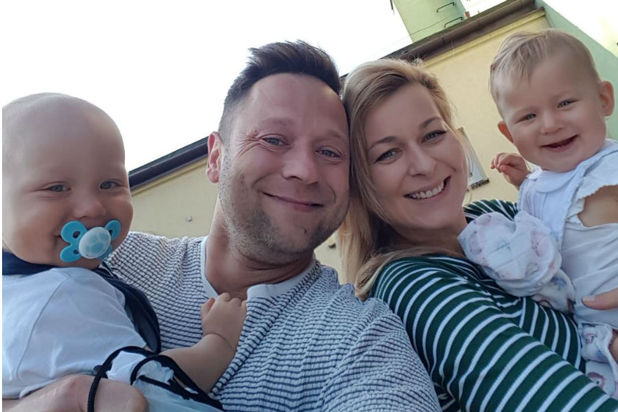 Magdalena Kozikowska-Pieńko i Kornel Pieńko z bliźniętami. Fot. Archiwum rodzinne