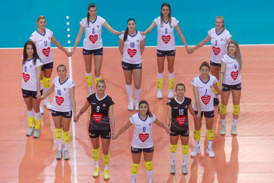 Koszulki z sercem przekażą na aukcję siatkarki Developres SkyRes Rzeszów. Fot. Facebook/KS Developres