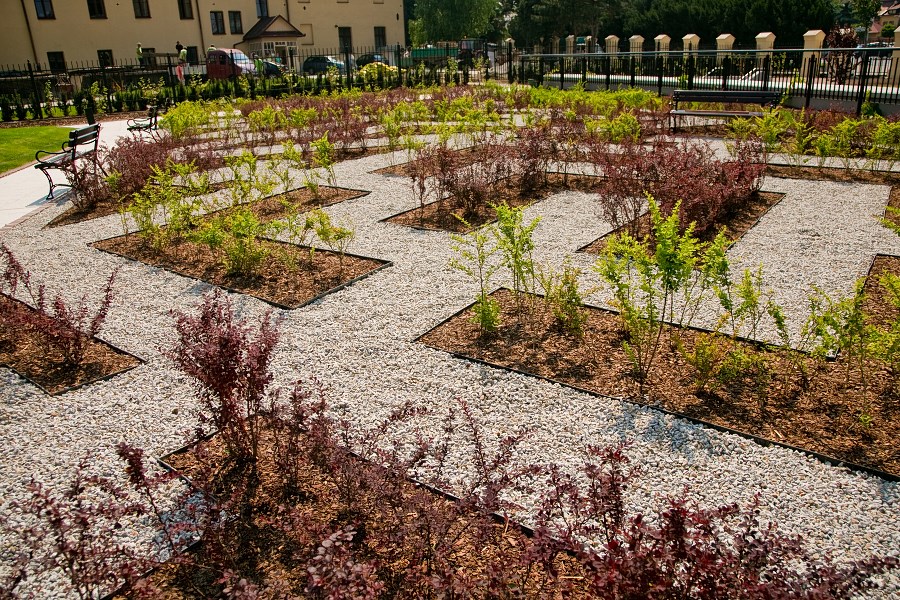 Rośliny dostarczyło Centrum Ogrodnicze Zielony Klomb. Wśród gatunków drzew i krzewów znajdują się m.in. wiśnie, grusze, śliwy, berberysy, derenie i cisy. Prezentują się pięknie, jednak na pełen efekt trzeba będzie poczekać kilka lat, kiedy trochę podrosną, a zasadzone pnącza otoczą tunele i pergole.