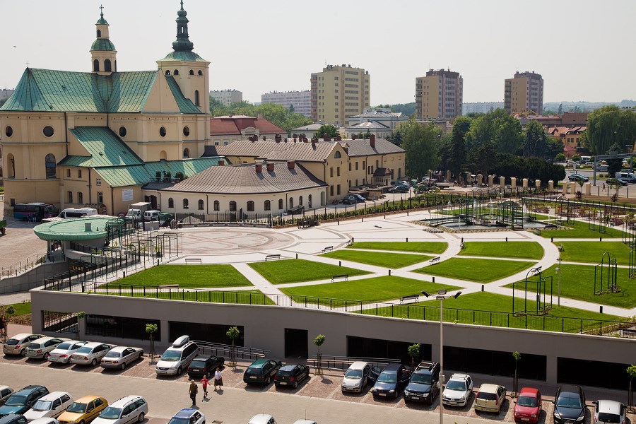W centralnym punkcie ogrodów bernardyńskich, które powstały nad istniejącym parkingiem, znalazły się oczko wodne i fontanna. W planach jest postawienie tu figury św. Franciszka. Na terenie ogrodów znajduje się plac w kształcie koła, na którym przy większych uroczystościach czy koncertach będzie konstruowana scena.