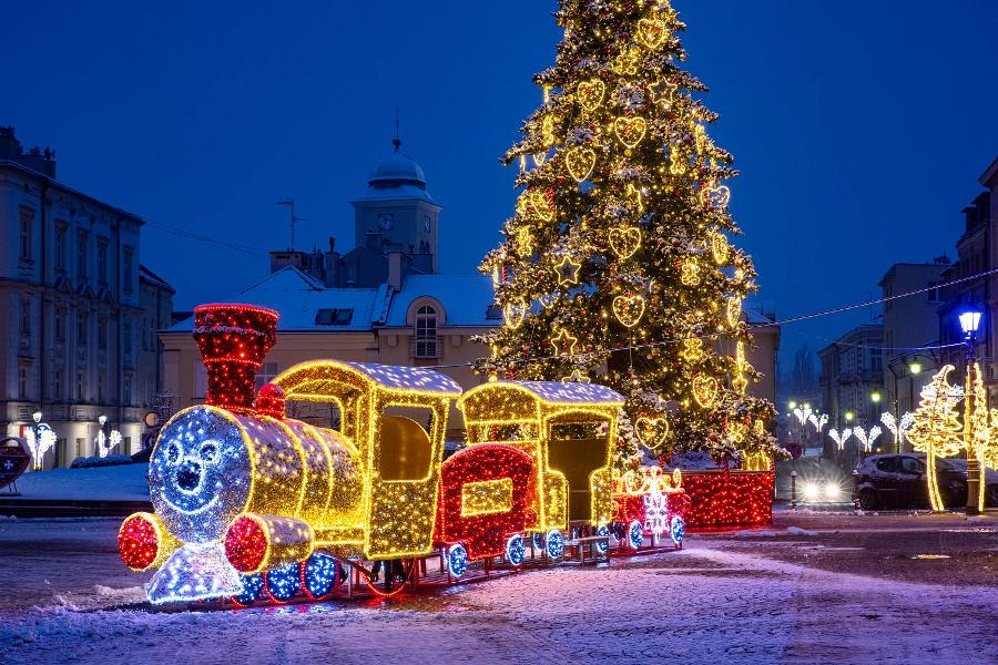 Rzeszów na świątecznym oświetlenie wyda w tym roku prawie 1,3 mln zł. Firma Multidekor z Piastowa zamontowała kolorowe iluminacje, ponad 16-metrową choinkę na Rynku i ciuchcię do pamiątkowych zdjęć. Chociaż ciuchcia ma sporą konkurencję w postaci ledowych polarnych niedźwiedzi, które świecą się już przy ul. 3 Maja.