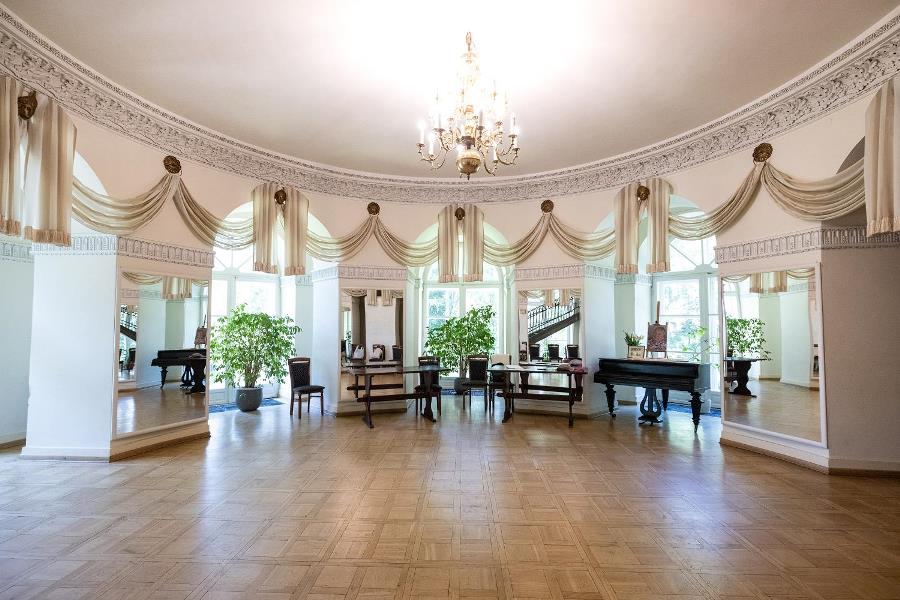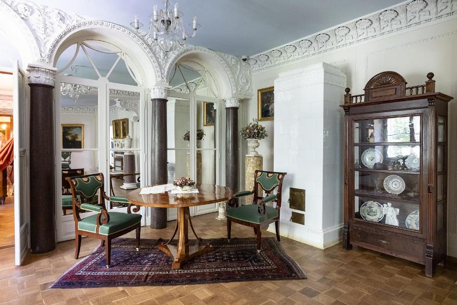 W górnej części wspomnianej Rotundy przyciąga uwagę jedyny ocalały parkiet wykonany z kilku gatunków drewna. Są to: czeczotka, brzoza, jawor, śliwa i cis. Prezentowany jest tutaj komplet eleganckich empirowych mebli, którym konserwatorzy na podstawie rycin z 1836 r. przywrócili dawny wygląd. Wnętrze zdobią oryginalny piec kaflowy oraz kominek, na którym ustawiono rzeźby i kandelabry. Dolna część Rotundy jest pusta. Była to sala balowa. Przed 1831 r. przyjeżdżali tu znamienici goście: księżna Izabela Czartoryska, książę Henryk Lubomirski – założyciel Muzeum Książąt Lubomirskich we Lwowie, hrabia Adam Rościszewski – znany kolekcjoner i mecenas sztuki, ks. Franciszek Siarczyński – przyszły dyrektor Ossolineum, Franciszek Ksawery Prek – pamiętnikarz i malarz oraz inni.