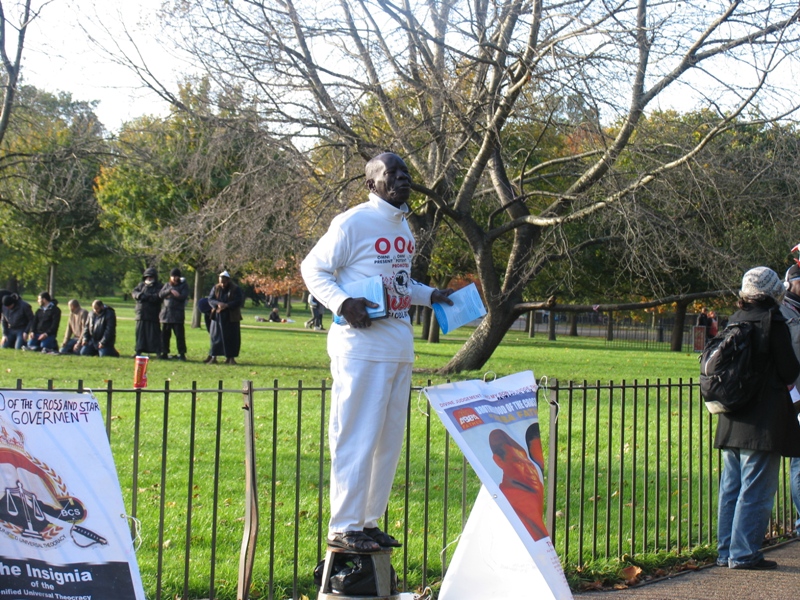 W  Hyde Parku, mimo wrednej londyńskiej pogody, że psa by nie wygonił, wokół speakera krytykującego „iluzję brytyjskiej koronowanej demokracji” sięgającej coraz głębiej do kieszeni podatników, zgromadziło się sporo słuchaczy. Zadają pytania, speaker objaśnia, ale gdy przyłącza się mężczyzna o wyraźnie południowoazjatyckich rysach, dyskusja przeradza się w kłótnię. Tylko patrzeć jak dojdzie do rękoczynów. Widząc co się święci, speaker zabiera dwie skrzynki po pomidorach na których stał przemawiając, i odchodzi w drugi koniec Speakers’ Corner. Po chwili znów otacza go tłumek. A krzykacza toczącego (dosłownie) pianę z ust, ludzie omijają. Z lawiny słów można wyłowić (bez obrazy) dwa: złodziejstwo i niewolnictwo.