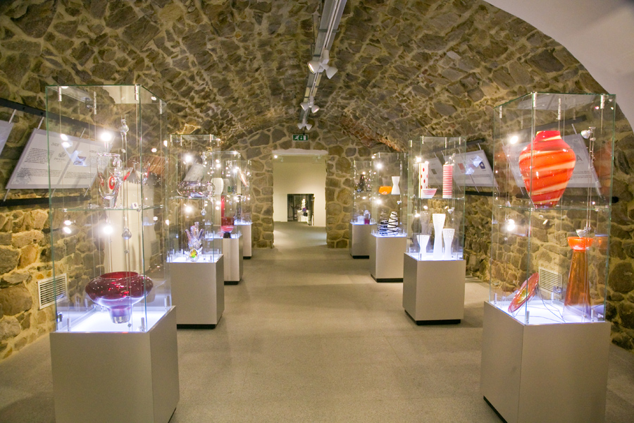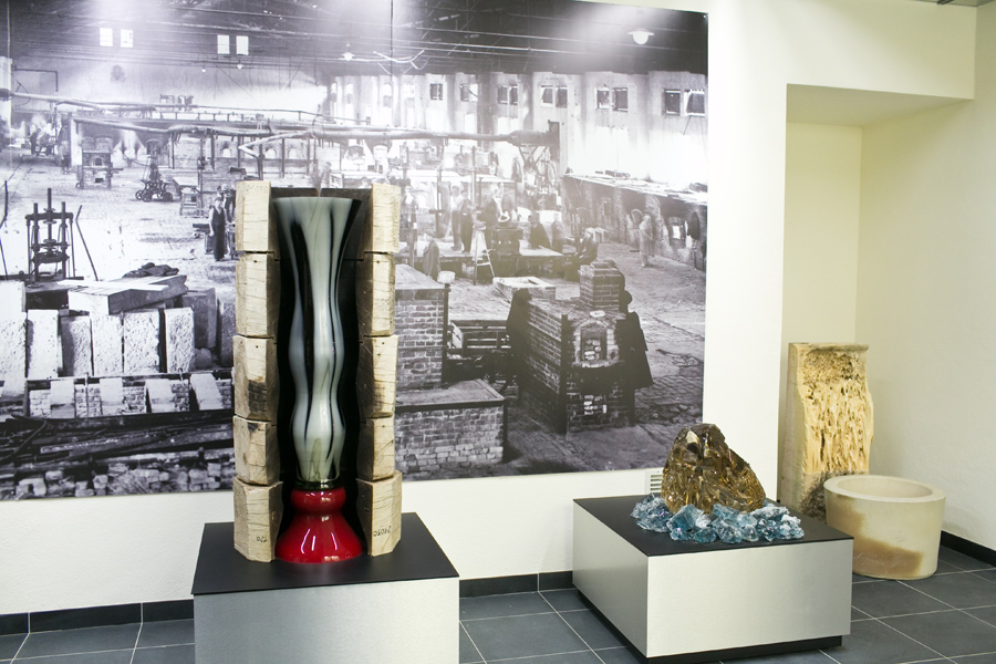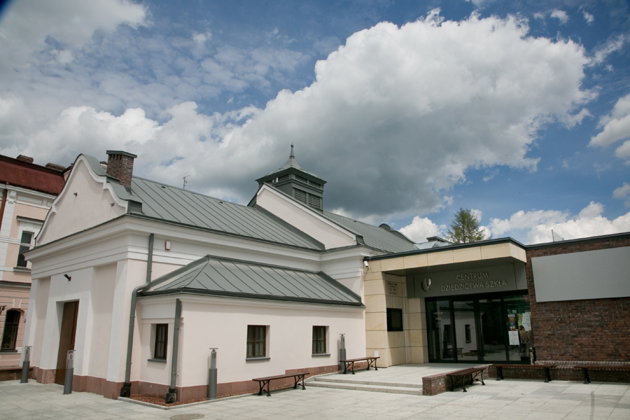 Jeszcze niedawno: po likwidacji sklepu firmowego Krośnieńskich Hut Szkła w Rynku, przez kilka lat w centrum miasta nie można było kupić miejscowych wyrobów. Sytuacja ta należy już do przeszłości dzięki otwartemu Centrum Dziedzictwa Szkła. Najważniejszym elementem projektu jest zespół pawilonów zbudowany na kilku poziomach w dawnym wale obronnym, z głównym wejściem od Rynku, na skrzyżowaniu z ulicą Blich. Najważniejszym miejscem ekspozycji jest czynny piec hutniczy, w którym na oczach zwiedzających powstają ręcznie formowane wyroby artystyczne. Za pomocą piszczela – długiej żelaznej rurki nabiera się z pieca porcję płynnego szkła. Gęstą przeźroczystą masę można zabarwić na jednolity kolor (za pomocą pudrów) lub w efektowne centki (poprzez użycie granulatów). Masie szklanej nadaje się kształt poprzez wydmuchiwanie. To prawdziwa sztuka. Można się o tym przekonać samemu, gdyż hutnicy zachęcają by pójść w ich ślady. Amatorskie próby najczęściej skazane są na porażkę: wydmuchany wyrób jest niekształtny, jego ścianki zbyt grube lub cieńsze niż powłoka choinkowej bańki. Dlatego nieudane wyroby lądują w pojemniku ze stłuczką, która zostanie powtórnie przetopiona na masę szklaną.