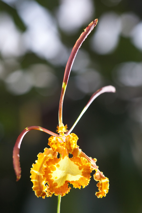 W czasie, gdy w łańcuckiej storczykarni niepodzielnie kwitną katleje, przychodzi też czas na bardzo rzadkie, szalenie ciekawe storczyki – paphiopedilum. Przy eleganckich, dostojnych katlejach, te zaskakują elektryzującą żółcią płatków, gdzie kwiat zdaje się być buzia jakiegoś stworzonka.
