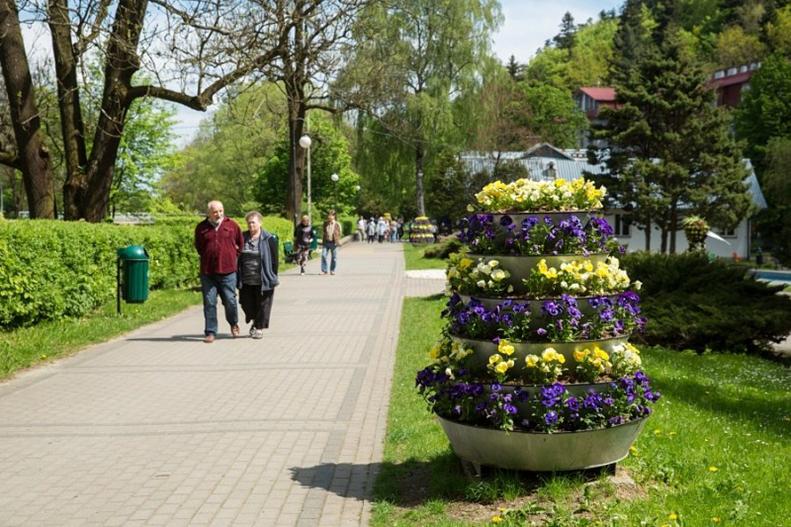 Rymanów-Zdrój, oczywiście, gościł nie tylko małych kuracjuszy. Kurował się tu Stanisław Wyspiański i Maria Rodziewiczówna, wiersze o malowniczej przyrodzie pisał Kazimierz Przerwa-Tetmajer. Śmietankę towarzyską, która zjeżdżała do uzdrowiska, bawiła koncertami Hanka Ordonówna, Mira Zimińska i Mieczysław Fogg. Spacerując wzdłuż rzeczki Tabor, płynącej przez rymanowski park nie trudno sobie wyobrazić, jak zauroczeni musieli być tym miejscem. Centrum miasteczka to właściwie wielki ogród, z zabytkowymi budynkami, szemrzącą wodą w fontannie i kolorowymi rabatami. Wokół wzgórza, lasy, spokój.