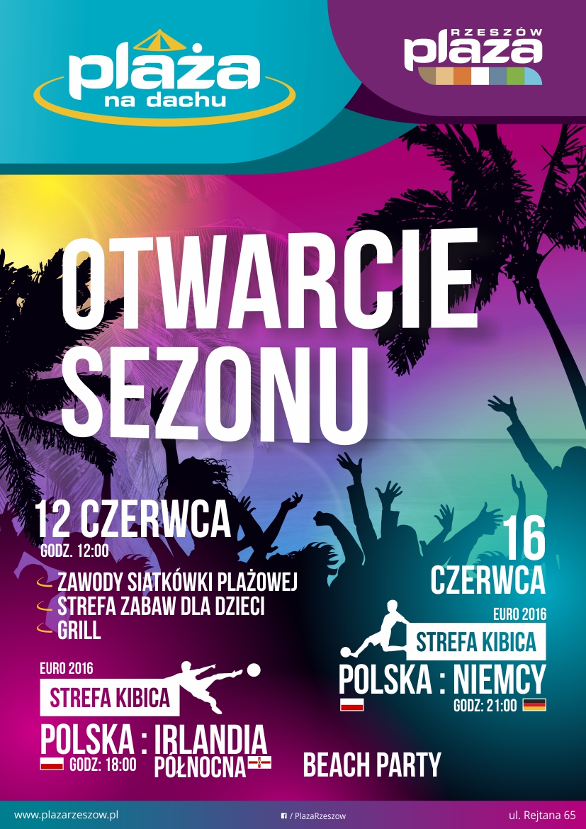 Mieszkańców Rzeszowa zapraszamy na otwarcie sezonu 12 i 16 czerwca 2016 r. m.in. do Strefy Kibica na transmisję meczów Polska – Irlandia oraz Polska – Niemcy podczas Euro 2016.