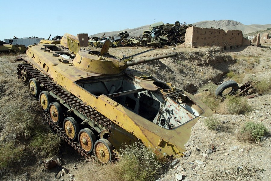 No tak, wystarczy przejść do granic parku rozrywki w kierunku wschodnim. Tuż za wyblakłym, kiedyś zapewne mocno kolorowym ogrodzeniem biegnie droga. Zaraz za nią kolejne ogrodzenie, tyle że z pozwijanego drutu kolczastego. Ciągnie się setki metrów, zakręca parę razy i zamyka wielkie koło wielkości trzech boisk piłkarskich. Trzy czwarte powierzchni zajmują stare, podziurawione wraki. Najwyżej jedna dziesiąta to samochody i stare autobusy. Resztę stanowią pordzewiałe i kompletnie zniszczone czołgi, armaty, haubice i transportery opancerzone. Po południu, jedną z bocznych uliczek miasta, szybko przemierzają trzy transportery opancerzone. Z każdego wystaje uzbrojony po zęby żołnierz z karabinem maszynowym. Potężne kaski nasunięte na czoła, ciemne okulary i arafatki zasłaniające pół twarzy. Wyglądają niezwykle groźnie, jak roboty szkolone do zabijania. Podobne wrażenie musieli sprawiać rosyjscy żołnierze, którzy w ubiegłym stuleciu przez 10 lat okupowali Afganistan.