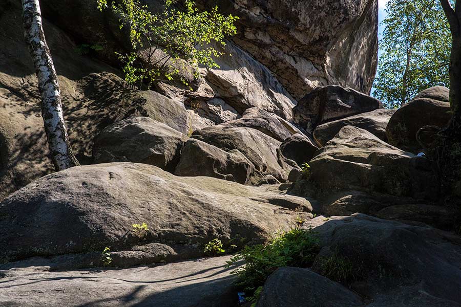 Druga legenda, spisana na podstawie relacji Wojciecha Byczka odwołuje się do pana zamku kamienieckiego, który miał trzy córki na wydaniu. Znany z zamiłowania do polowań, często je urządzał, zapraszając zwłaszcza młodych rycerzy. Kiedy jedna z córek znalazła wielbiciela, zaczęto przygotowywać wesele. Mężczyźni wyruszyli na polowanie, a dziewczęta przędły płótno na wyprawę. Zniecierpliwione brakiem powrotu myśliwych na noc, postanowiły ich poszukać, ale straciły orientację w lesie. „ (…) znalazły się na skraju polany, a widząc ognisko i siedzące przy nim postacie, były przekonane, że to poszukiwani myśliwi. Jakie było ich przerażenie, kiedy na ich okrzyk, zamiast ojca, podszedł do nich brodaty zbójca, a z lasu wynurzyło się kilka groźnych postaci. Przerażone zawróciły konie i rzuciły się do ucieczki. Zbójcy także dosiedli koni i tak rozpoczął się szaleńczy pościg. Odległość między ścigającymi a ściganymi zmniejszała się, bo konie sióstr były okrutnie zmęczone. I kiedy wydawało się, że dla dziewcząt nie ma już ratunku, stała się rzecz dziwna. Czarownik, który przybył wraz z młodzieńcem do zamku, zamienił siostry w ogromne głazy, a sam zapadł się pod ziemię. Od tego czasu słychać w tym miejscu nocą dziwne jęki i zawodzenia, jakby siostry skarżyły się na swój los”.