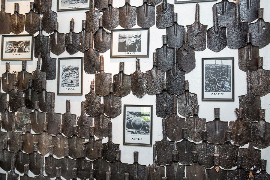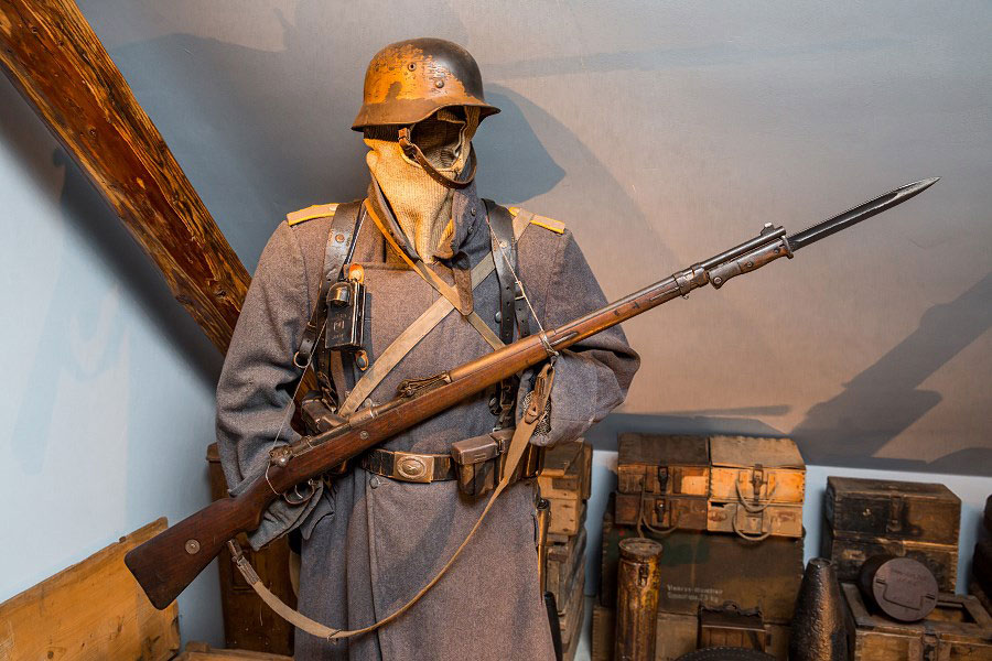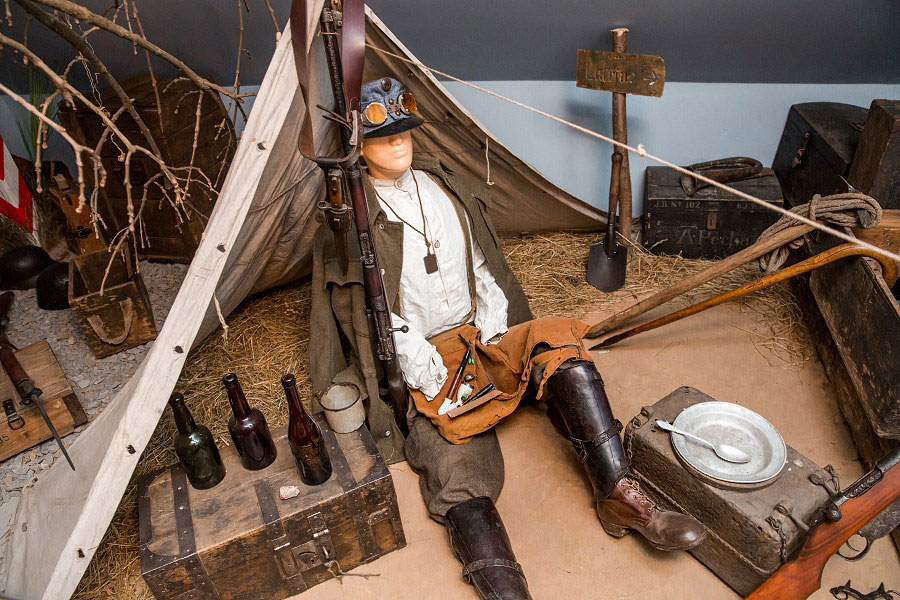 Każdy, nawet niepozorny eksponat ma własną, nieraz bardzo wymowną historię. Oto kartka, opatrzona wieloma różnokolorowymi stemplami, którą do rodziny w Łękach Dukielskich wysłał z niewoli rosyjskiej Jan Krężałek, szeregowiec armii austro-węgierskiej. Z miejsca zesłania na Syberii wracał do rodzinnego domu głównie pieszo. Zajęło mu to blisko dwa lata. Rękawica piechura carskiego z wycięciem na palce do obsługi broni wykonana jest z wielbłądziej wełny. Ocalała w dobrym stanie, choć na przedpiersiu okopu przeleżała całe stulecie. W czasie I wojny walki w Karpatach toczyły się w sięgającym po pas śniegu. Jak opowiadano, zabici w czasie ataku carscy żołnierze stali w tym śniegu unieruchomieni aż do wiosennych roztopów. Metalowa papierośnica nosi ślad przekłucia na wylot bagnetem. Jeżeli żołnierz nosił ją w kieszeni na piersi, ocaliła mu życie.