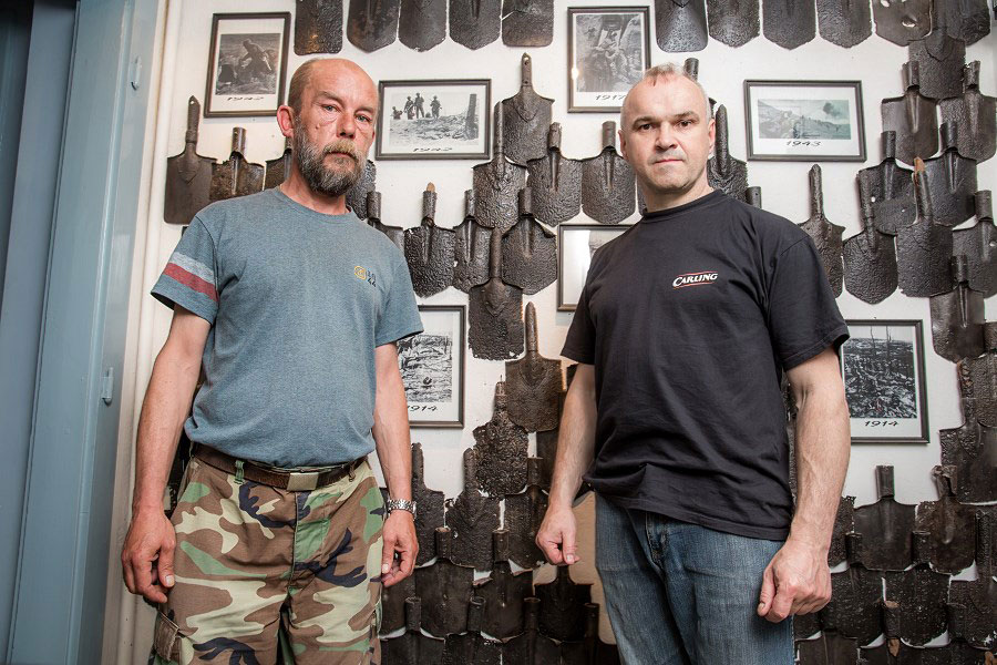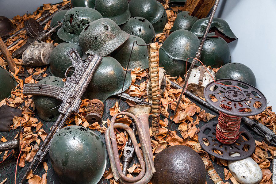 Ślady obu wojen widoczne są do dziś. Zarośnięte linie okopów, których przedpiersia wciąż otoczone są kamieniami, fragment pocisku katiuszy, który głęboko utknął w konarze rozrastającego się drzewa, saperka tkwiąca od dziesiątków lat w korzeniu pnia (jej właściciel zapewne zginął skoszony pociskiem), porzucony hełm, resztki zasieków z drutu kolczastego, tysiące rozsypanych łusek karabinowych i artyleryjskich. Piotr Kiełtyka i Lesław Wilk od dzieciństwa zbierali pamiątki z pól bitewnych. Po ogłoszeniu stanu wojennego - w kwietniu 1982 Piotr został zatrzymany przez Milicję Obywatelską. W wyniku rewizji czternastolatek bezpowrotnie stracił swoją pierwszą kolekcję militariów. Jego dumą był świetnie zachowany polski hełm - wzór 31 z września 1939 roku.