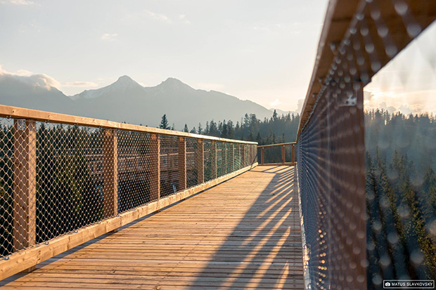 Cały drewniany szlak o łącznej długości 1 234 metrów poprowadzony jest spiralnie nad koronami drzew. Maksymalna wysokość szlaku wynosi 24 m i kończy się okrągłą wieżą widokową o wysokości 32 metrów. Z wieży roztacza się imponujący widok na panoramę Tatr Bielskich, Zamagórza, Pienin z Trzema Koronami oraz Zamkiem w Niedzicy.